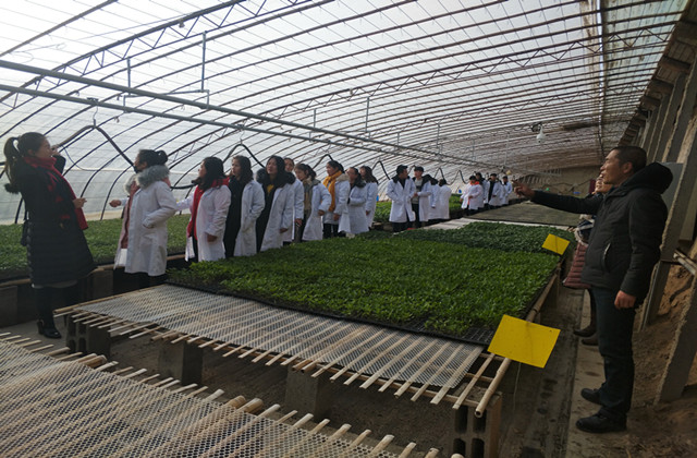 金大鹏专业合作社张经理带领师生参观了自动化育苗生产车间、育苗大棚等。参观过程中,张经理向学生详细介绍了自动化育苗的流程、自动化灌溉设施、引进的蔬菜新品种、温室管理新技术等。蓝天花卉公司袁经理向学生介绍了常见的花卉品种及生活习性,学生们边走边看边记,学习热情异常高涨,真正实现了在做中学,学中做。