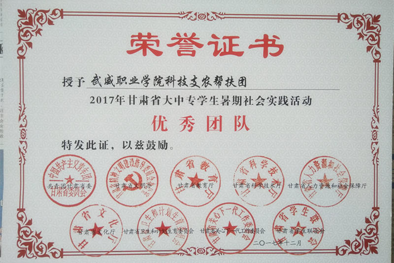 活动结束后,根据《关于开展2017年甘肃省大中专学生志愿者暑期文化科技卫生“三下乡”社会实践活动的通知》要求,我系组织的科技支农帮扶团集体和个人被评为甘肃省暑期“三下乡”社会实践活动先进集体和个人。