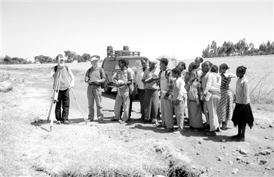 除了水电项目,学校测绘工程学院师生也以技术服务“测量”非洲。2009年12月,学校与中国水利水电顾问集团北京勘测设计研究院签订全面合作框架协议,承担了两期援建埃塞俄比亚风电场110平方公里的测绘项目,学校选派骨干师生16人组成测量队,先后于2010年、2012年两次远赴非洲,开展技术测量服务。尽管测区内海拔高、天气炎热,到处是深沟险壑,荆棘密布,丛林密集区域经常有狼出没,但是队员们却不畏艰难、精益求精,按照“实习·生产”一体化的要求,高标准完成了60个E级GNSS控制点的选点埋石、外业观测和数据处理工作,精度达到百万分之一,为企业解决了复杂地图投影变换和绘制英尺数字地形图的难题,充分展示了学校师生的精湛专业技能和良好职业素养。