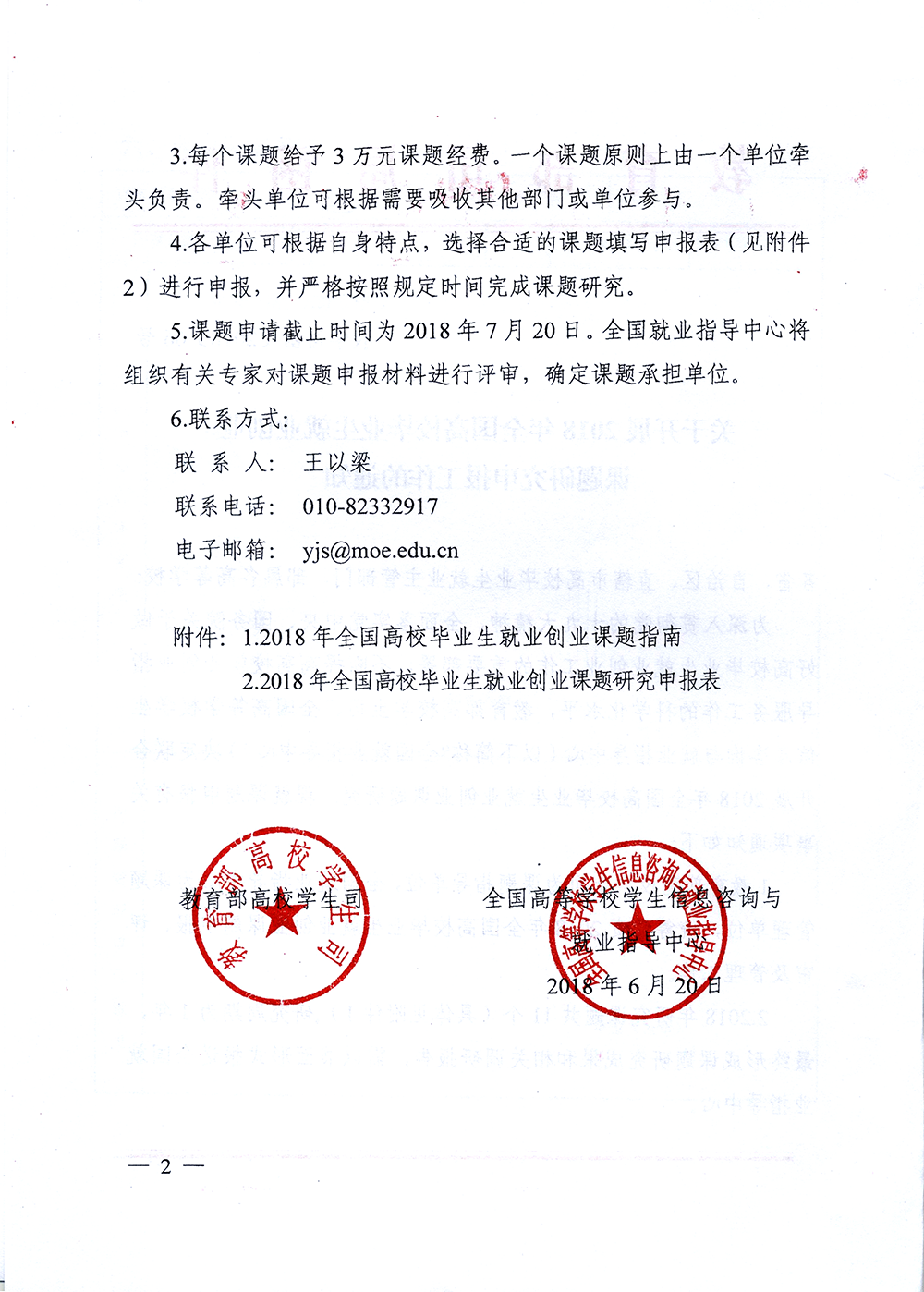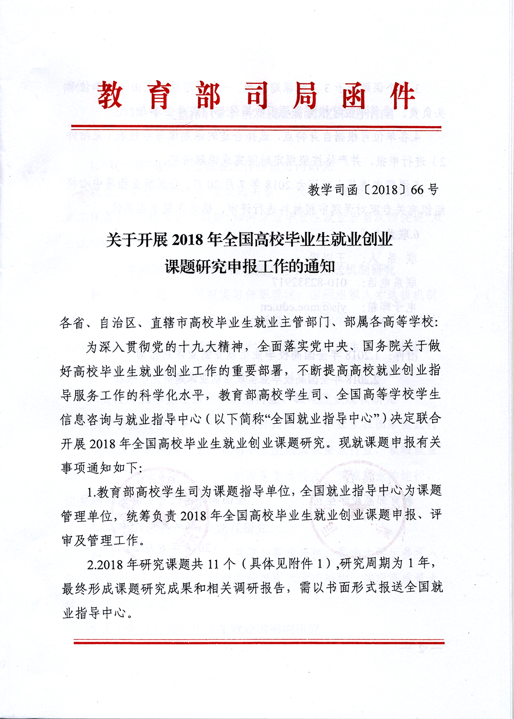 关于开展2018年全国高校毕业生就业创业课题研究申报工作的通知(附件1、附件2)
