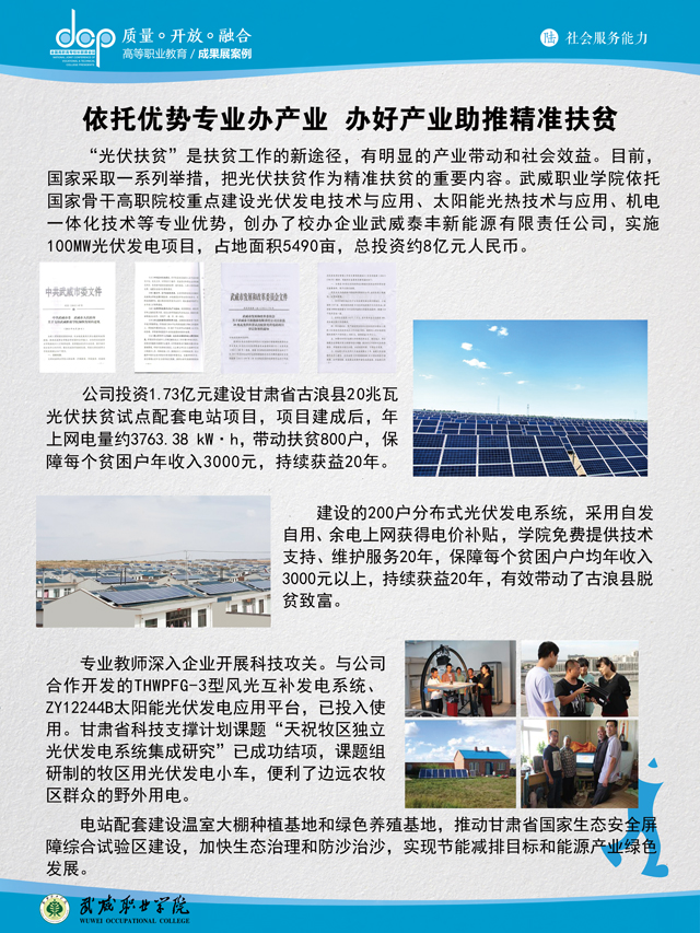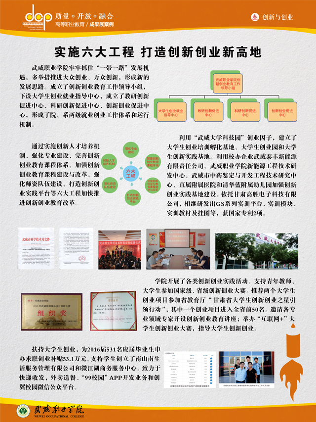 全国高职高专校长联席会议秘书处为了展示和宣传全国职业教育会议以来高等职业教育的改革发展成果,面向全国高职高专院校征集了部分改革发展案例,经过专家评选,253个典型案例在年会上进行了展示。我院选送的“依托优势专业办产业 办好产业助推精准扶贫”、“实施六大工程 打造创新创业新高地”两个案例在年会现场展示,500多所高职院校、7个省级教育行政部门和26家企事业单位代表900余人观看了现场展示。(教务处)