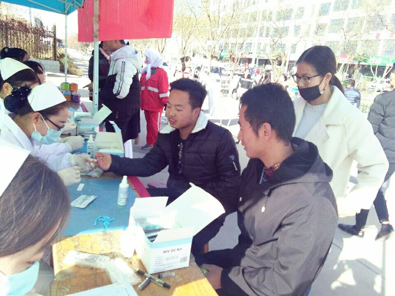 11月17日开始利用周末时间在武威文化广场、武威职业学院门口等地开展了免费检测艾滋病与知艾防艾知识宣传活动。活动吸引了广大师生及路人,组织井然有序,活动场面显得忙而不乱。在护理系红丝带协会志愿者与武威市疾控中心人员娴熟的操作下,通过指尖采血,HIV病毒胶体金法检测,共检测了80余人,检测速度快,精准度高。检测结束后,向检测者赠送活动宣传纪念品。此次检测活动采取保密制,保护检测者的一切信息。
