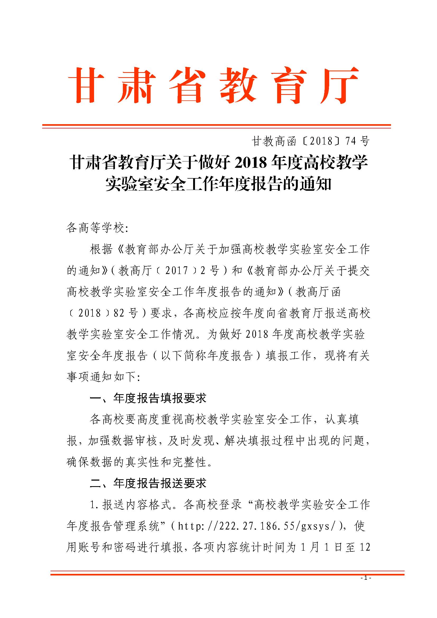 甘肃省教育厅关于做好2018年度高校教学实验室安全工作年度报告的通知