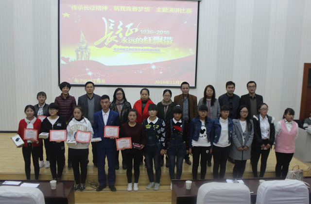 为贯彻习近平总书记在“红军长征胜利80周年大会”上发表“不忘初心、继续前进,走好新的长征路”的重要讲话,激发师生弘扬伟大的长征精神,电子信息工程系于11月3日在正德厅举办了 “传承长征精神,筑我青春梦想”主题演讲比赛。系主任李亚梅及各位班主任担任本次比赛评委,2016级全体学生观看了比赛。