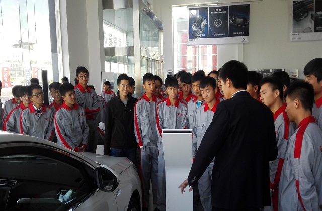 在参观学习的过程中同学们积极性很高,认真听取各4S店工作人员对汽车销售、汽车售后等工作岗位的介绍,并就汽车销售和维修中一些专业的问题进行了良好的互动。