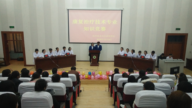 为加强学风建设,巩固特色专业建设成果,增强同学们对专业知识的了解,培养同学们的思维能力、创新能力,提高学生的竞争力,12月5日晚,医学技术与信息管理系在尚德楼正德厅举行康复治疗技术专业知识竞赛。学院基建处处长周兴全,系主任杨如松,学生工作负责人魏曙光,院团委马琪老师,系政治辅导员,康复治疗技术专业教研室主任、任课教师及全体班主任、学生代表参加本次活动。