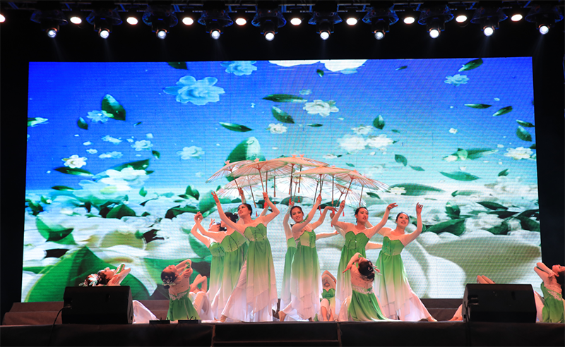 晚会中,在音乐学科专业颇有建树的几位老师表演了高水准的器乐合奏《赞歌》,让师生陶醉于器乐演奏的优美旋律和意境,赢得了全场经久不息的掌声。大学生艺术团舞蹈队和声乐队表演的歌伴舞《红旗飘飘》《美丽中国》激情四射、唯美动听,诠释了青年学子对祖国的热爱和深情祝福。人文艺术教育系选送的现代舞《追逐梦想》用欢快的舞步展现了青年最富有朝气、最富有梦想的精神风貌,《茉莉花开》更是让师生陶醉于传统舞蹈的优美意境。双人舞表演《乡·远方》舞蹈动作豪放、粗狂但不失委婉、细致,为我们呈现出“天之骄子”的气概。校园好声音教师组冠军和学生组冠军合唱的歌曲《你是我的眼》传唱了职院好声音,定格了大家的青春记忆。校园二把手乐队带来的歌曲《平凡之路》引起全场轰动,将晚会推向了高潮,同学们纷纷点亮了自己的手机,现场汇成了一片充满歌声的“星海”。