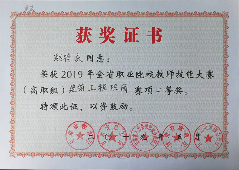 我院建筑工程系教师在“2019年甘肃省职业院校教师技能大赛”中再创佳绩