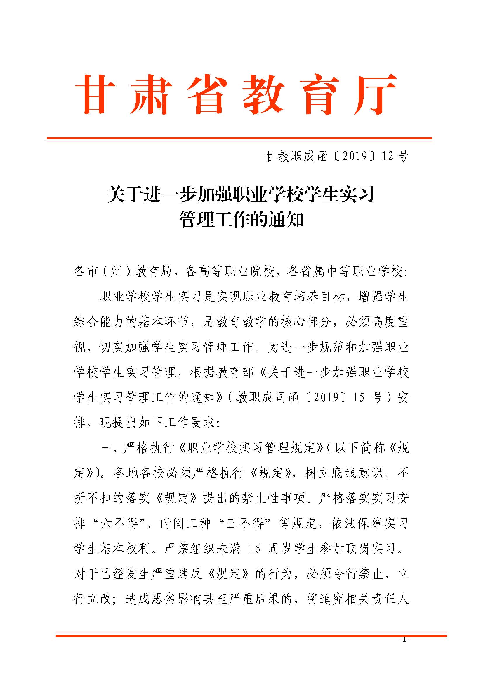关于进一步加强职业学校学生实习管理工作的通知