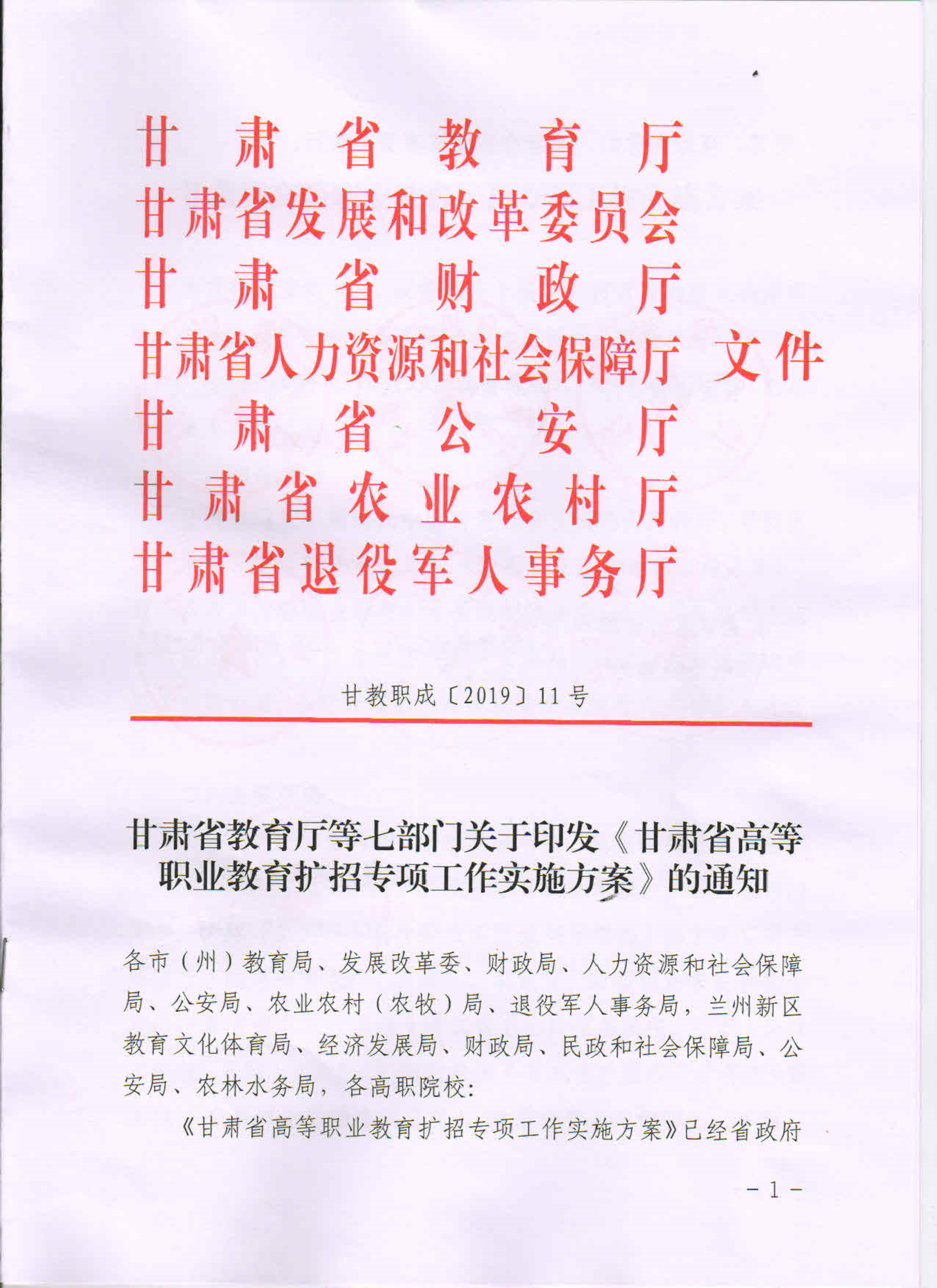 19年关于做好2019年甘肃省高等职业教育扩招专项考试招生工作的通知