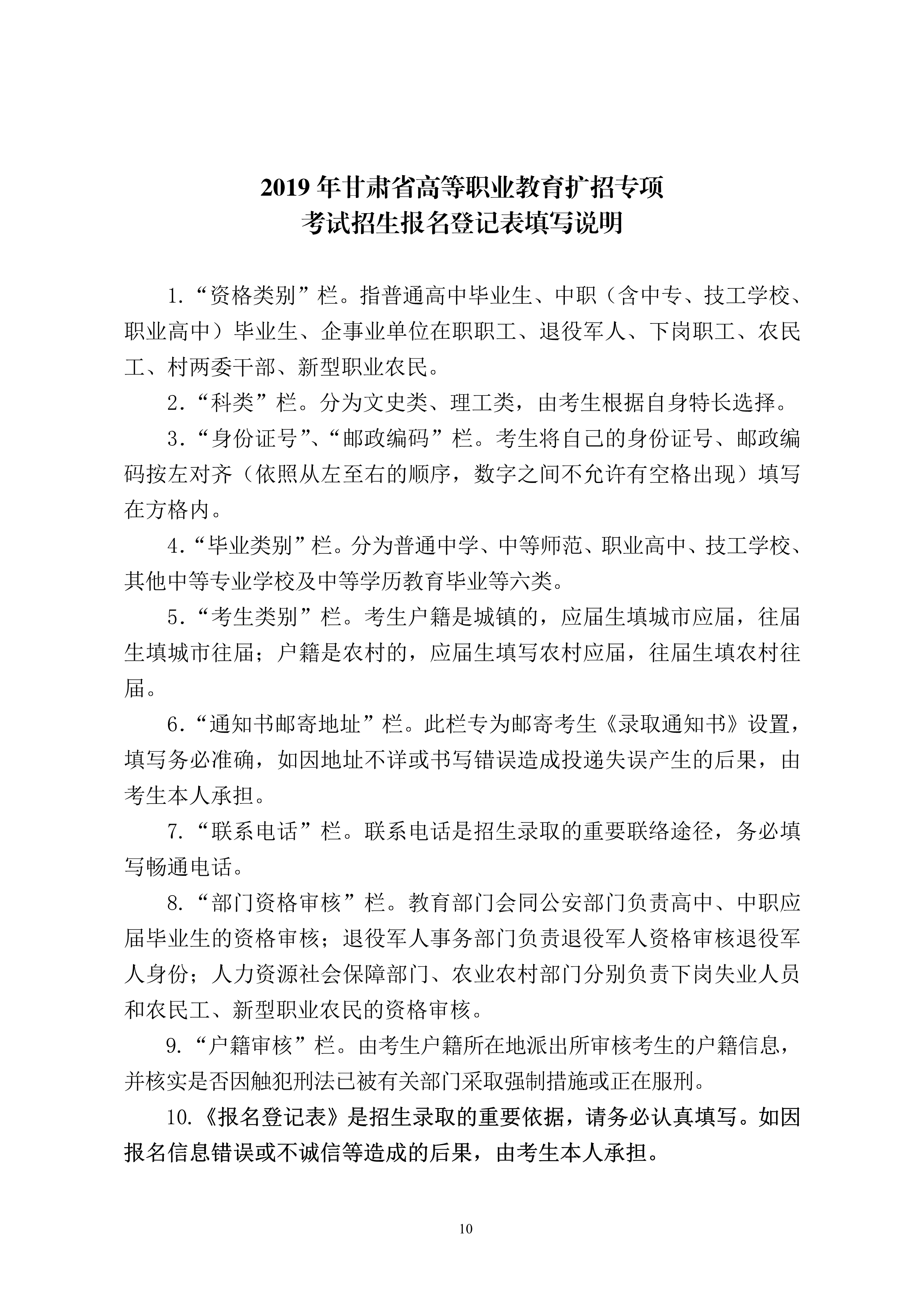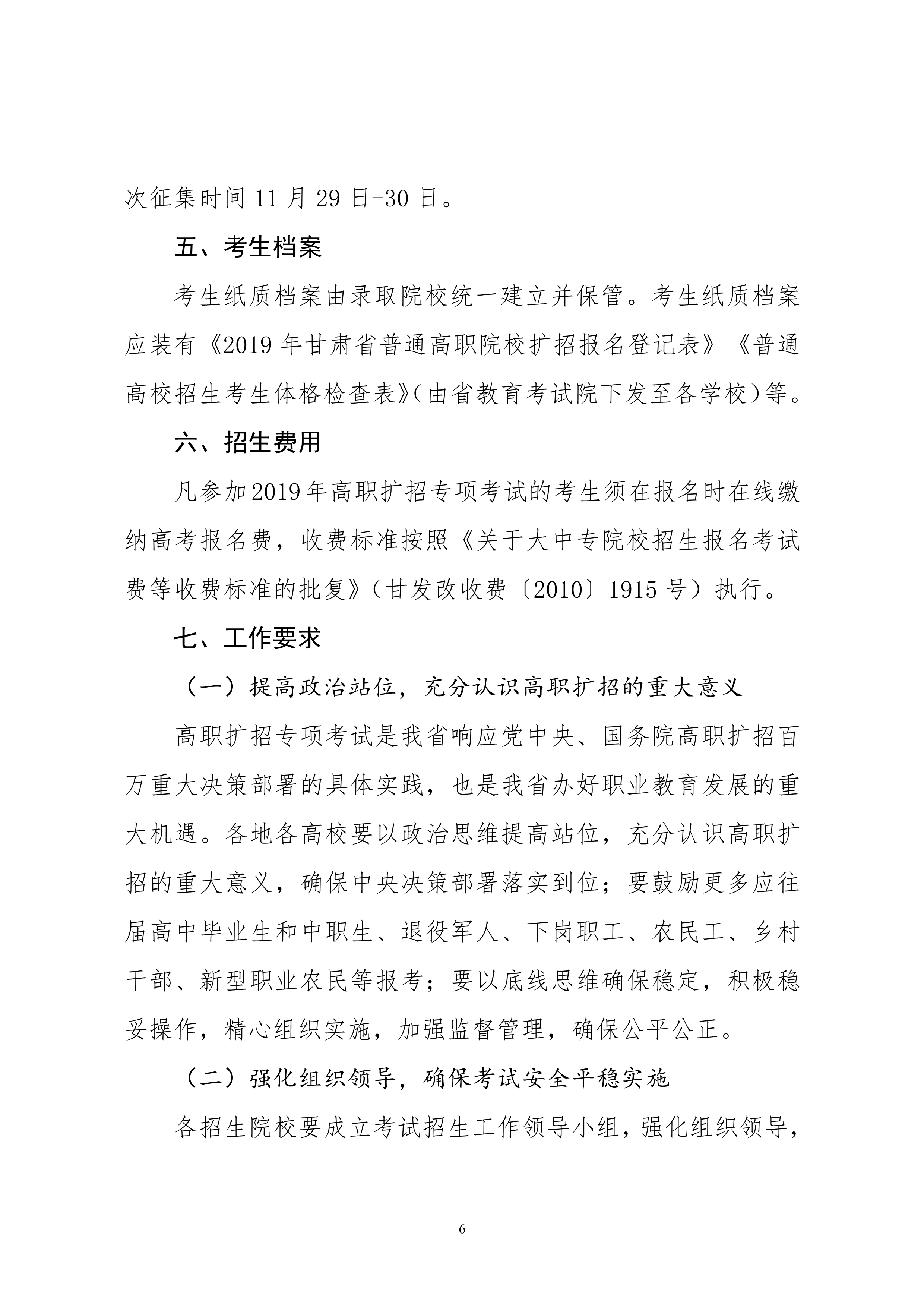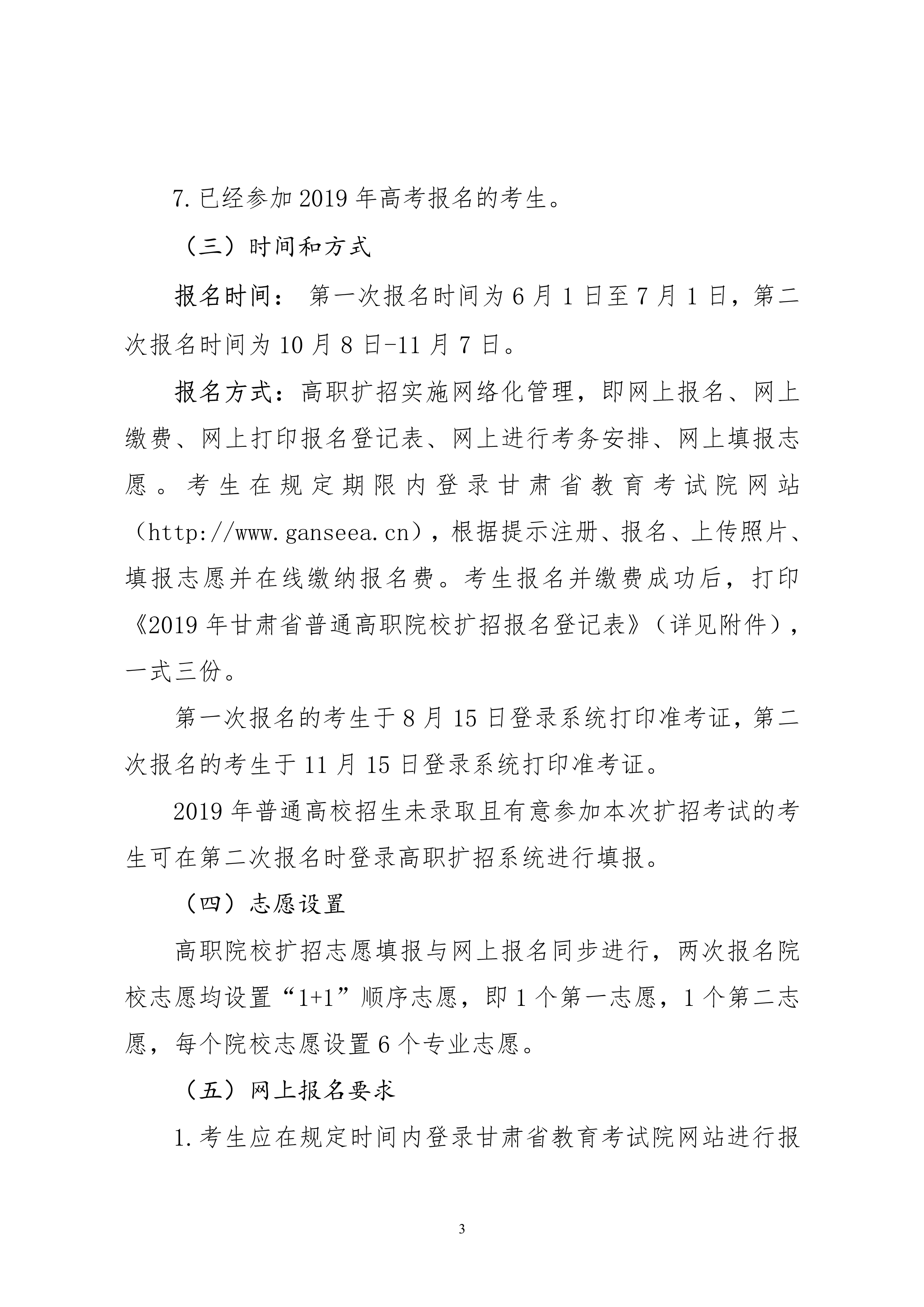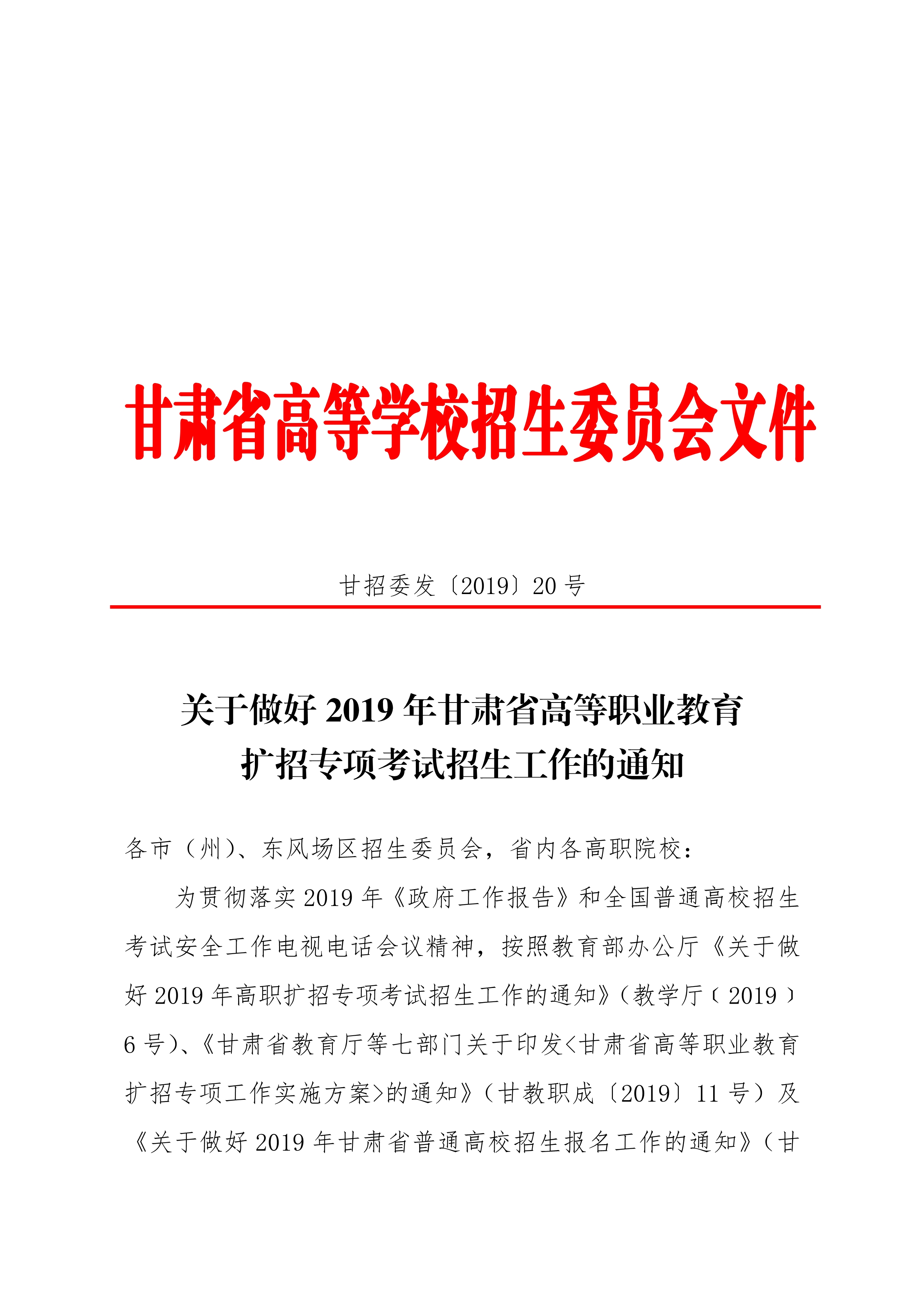 19年关于做好2019年甘肃省高等职业教育扩招专项考试招生工作的通知