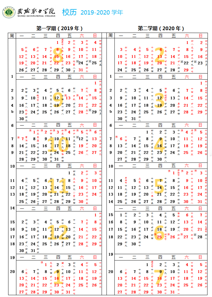 2019-2020学年校历