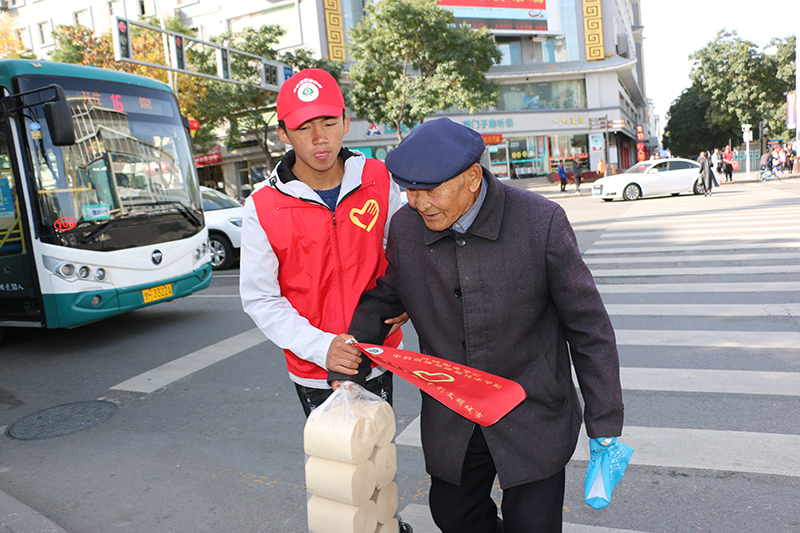 19日早上11点,正值城市交通的高峰时段,身穿志愿者服装,手持“争当文明市民、争创文明城市”交通指挥旗的志愿者们站在大十字和北关十字执勤位点上,认真履行文明交通志愿者职责,协助交警耐心地引导过往行人和非机动车辆遵守交通规则。当看到闯红灯、等红灯压线等不文明交通行为时,志愿者们会上前进行礼貌地劝导;当遇到行动不方便的老年人过马路时,志愿者们会热心地帮助老人安全通过马路,在志愿者们的示范引领下,十字路口的交通秩序显著好转。