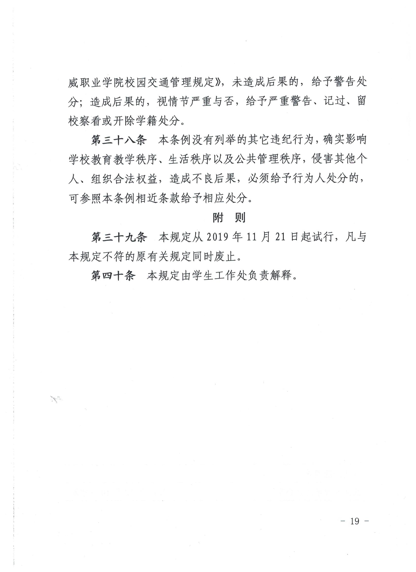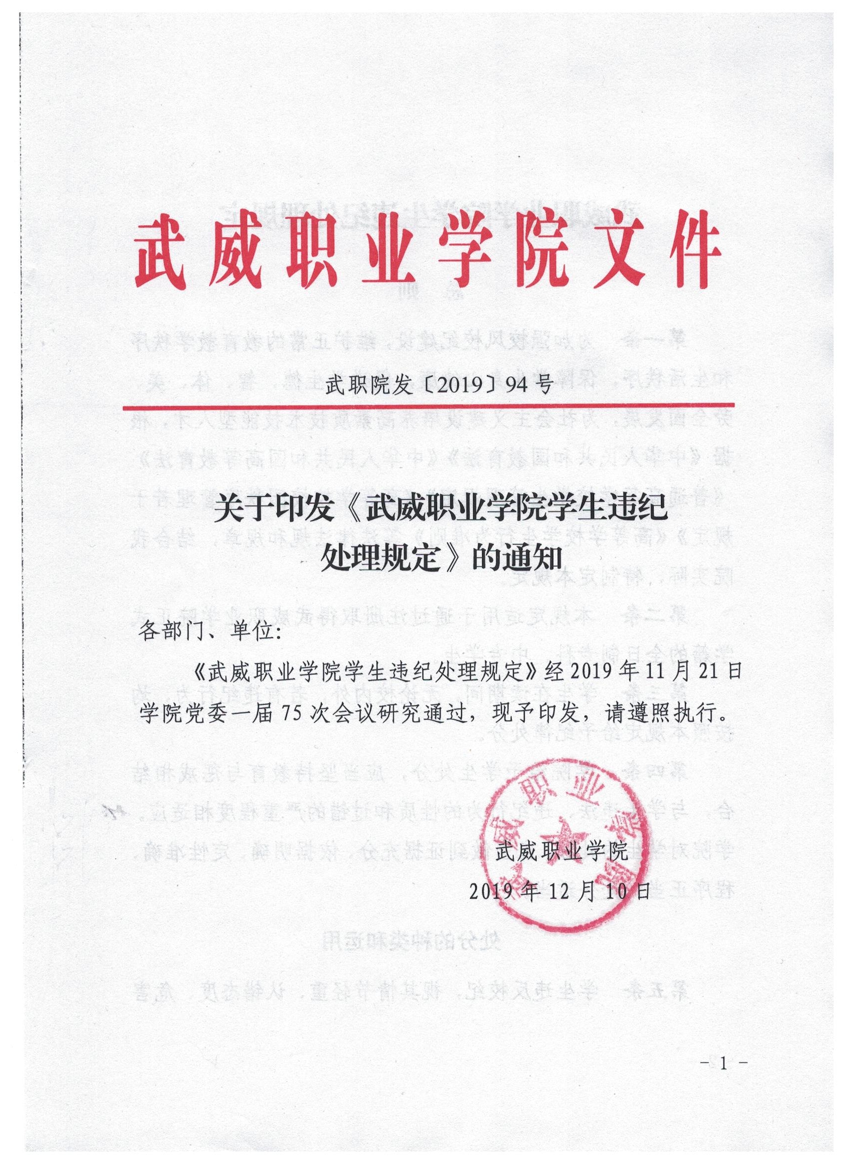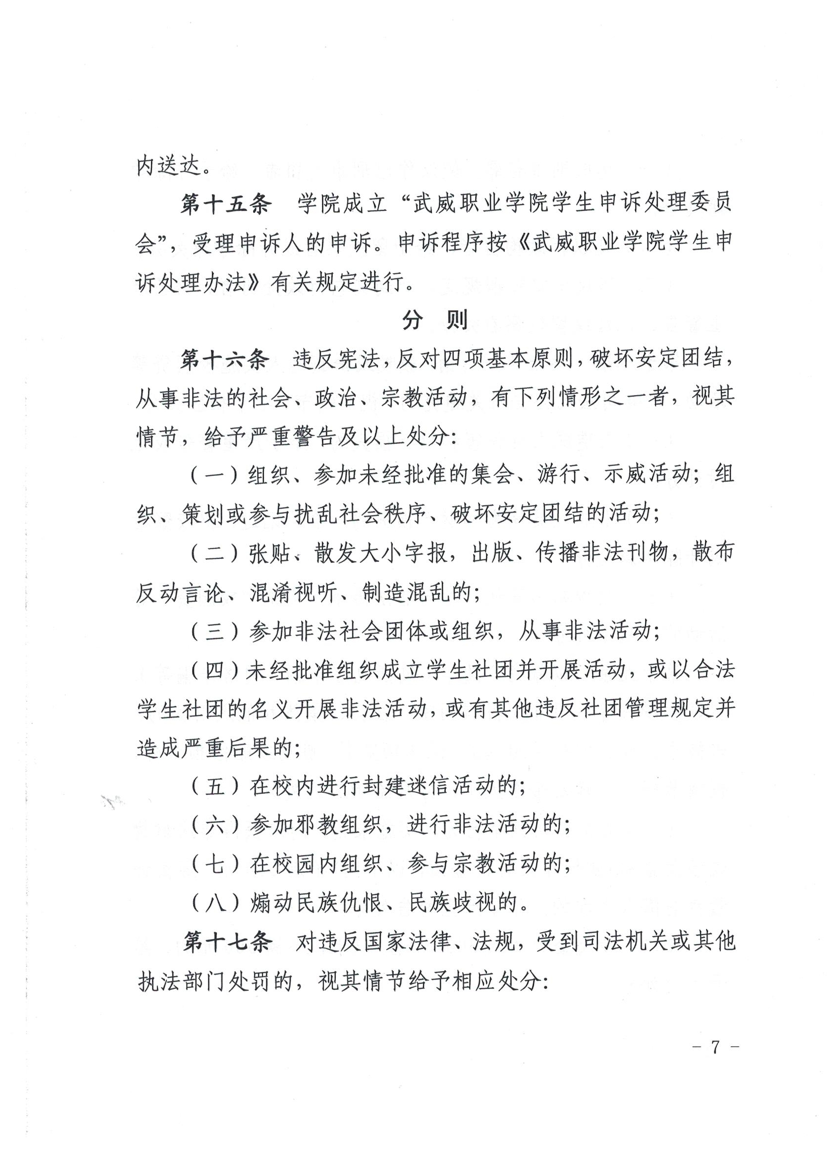 武威职业学院学生违纪处理规定