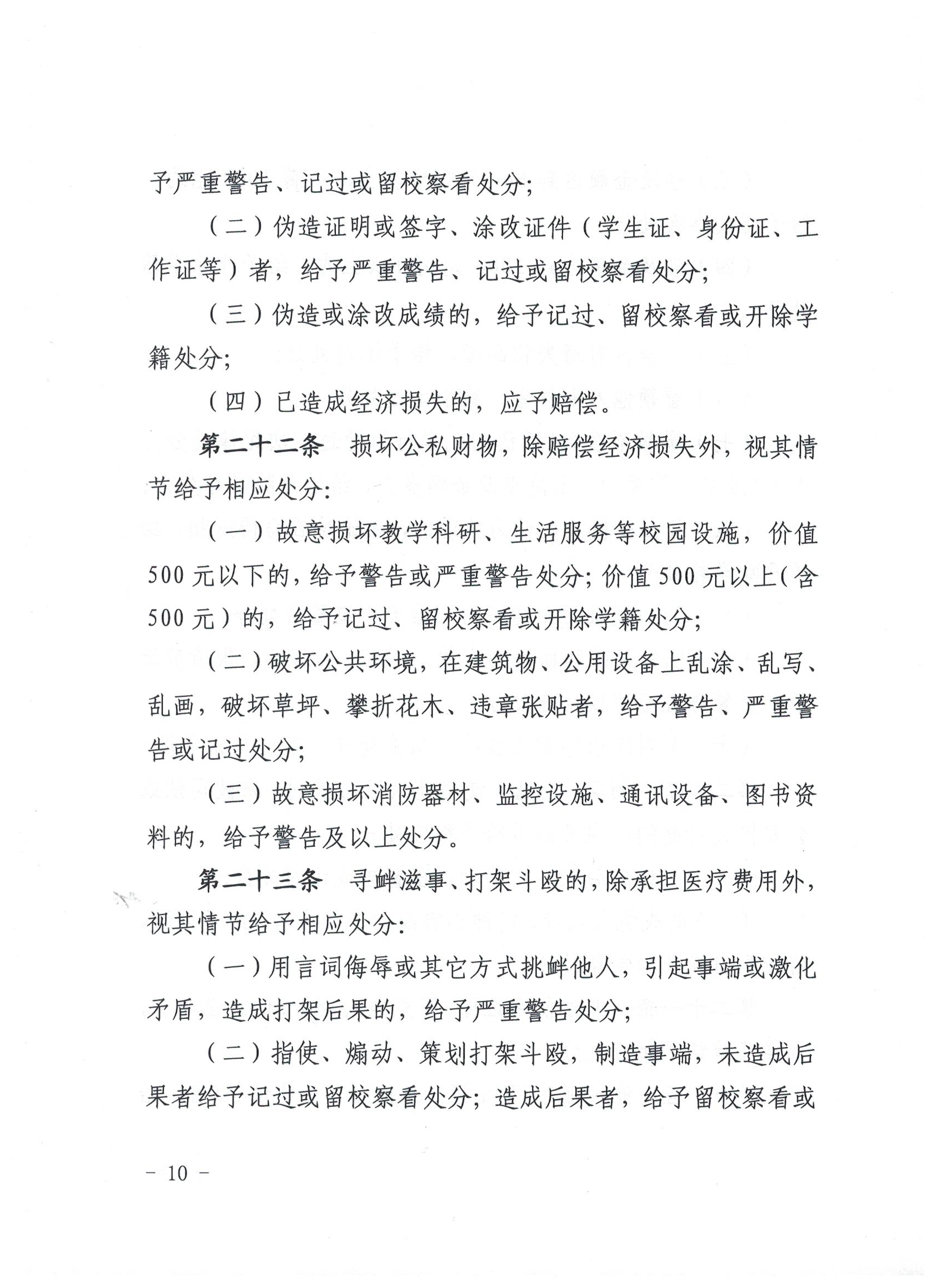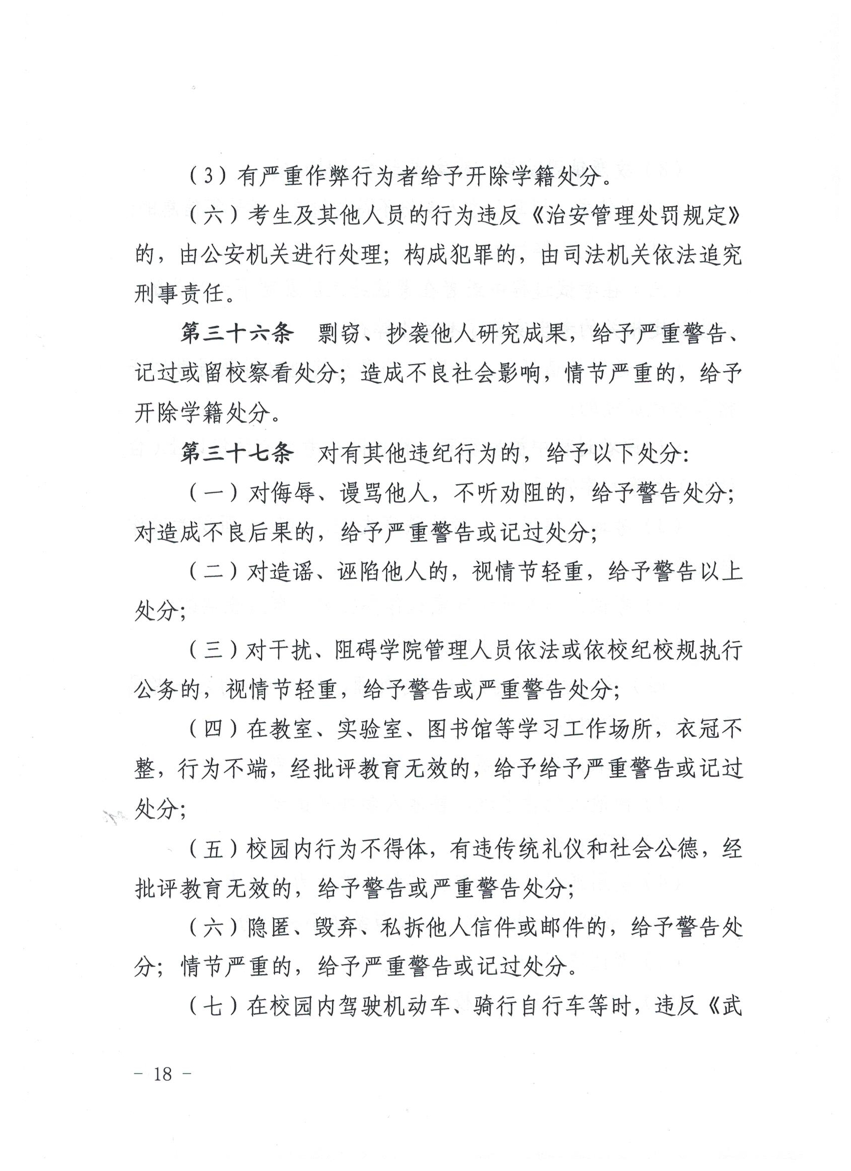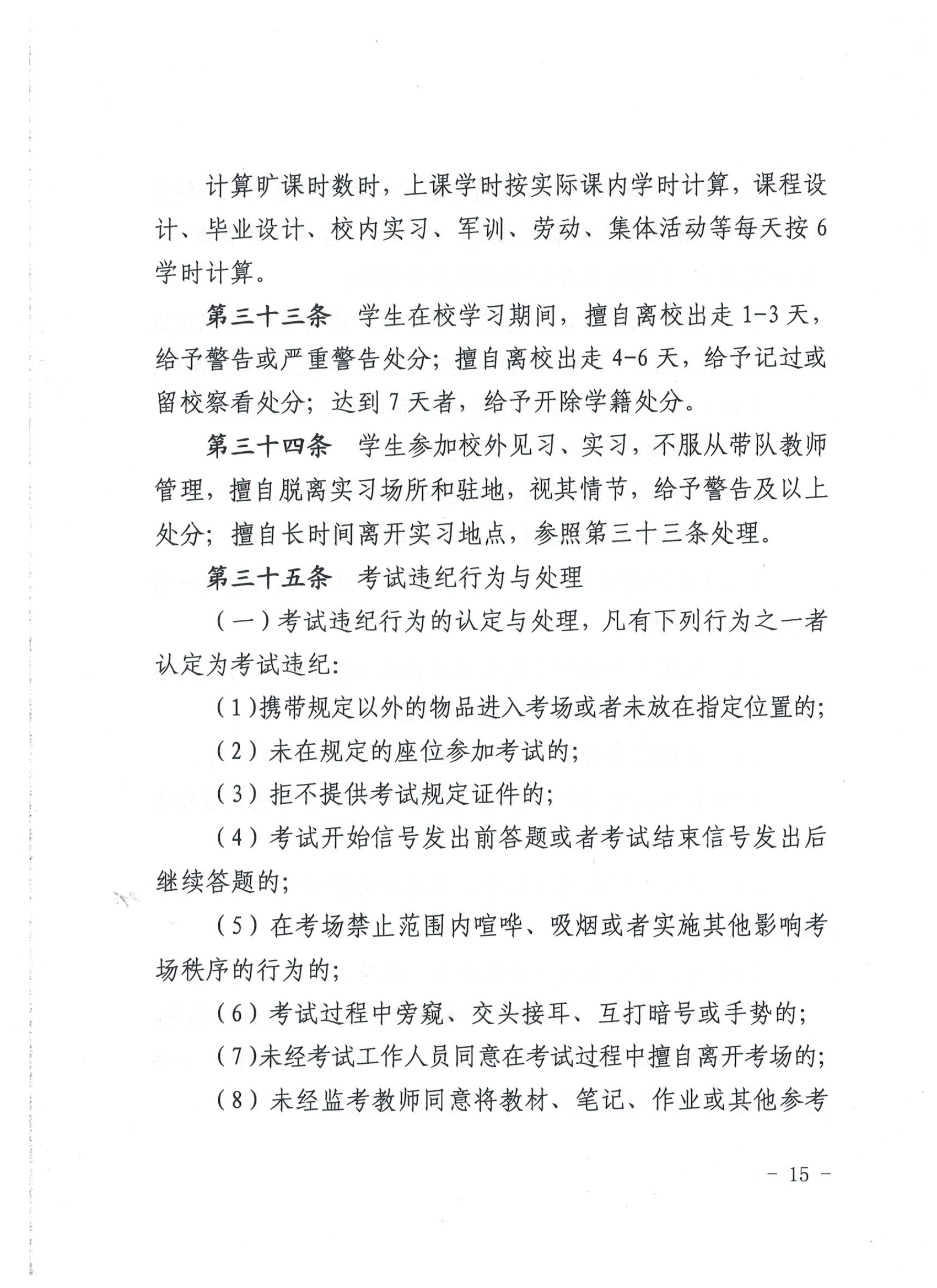 武威职业学院学生违纪处理规定