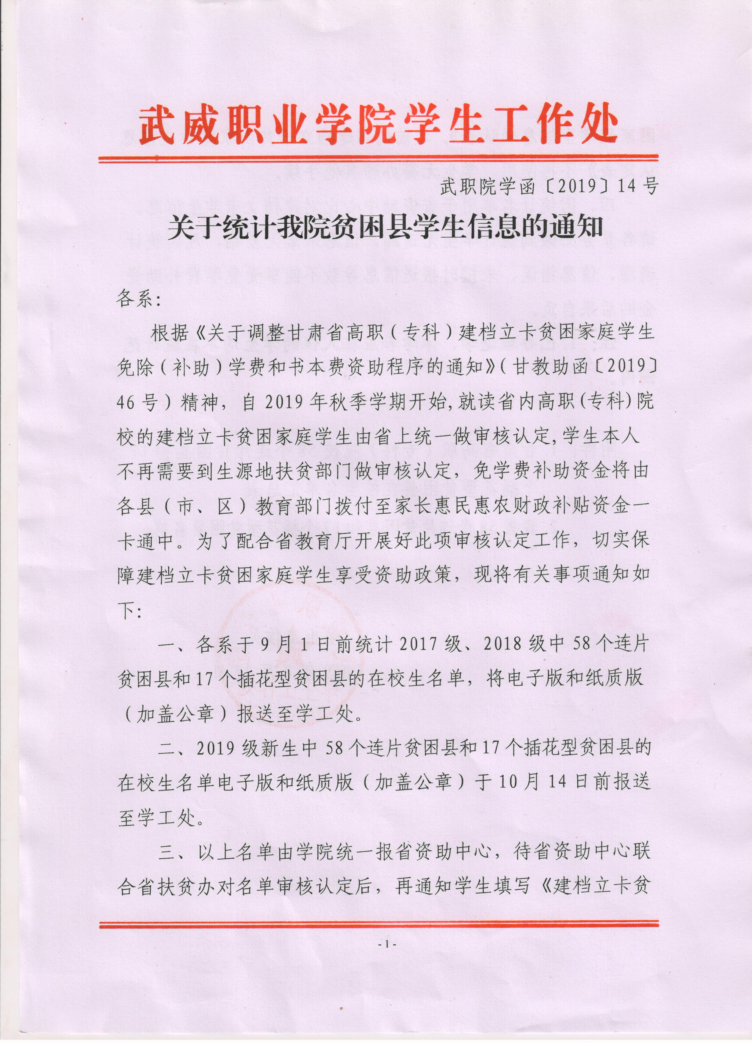 关于统计我院贫困县学生信息的通知