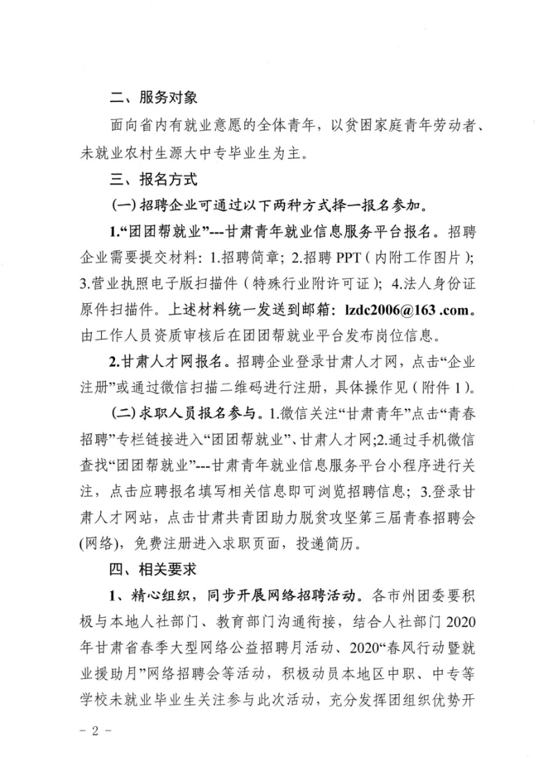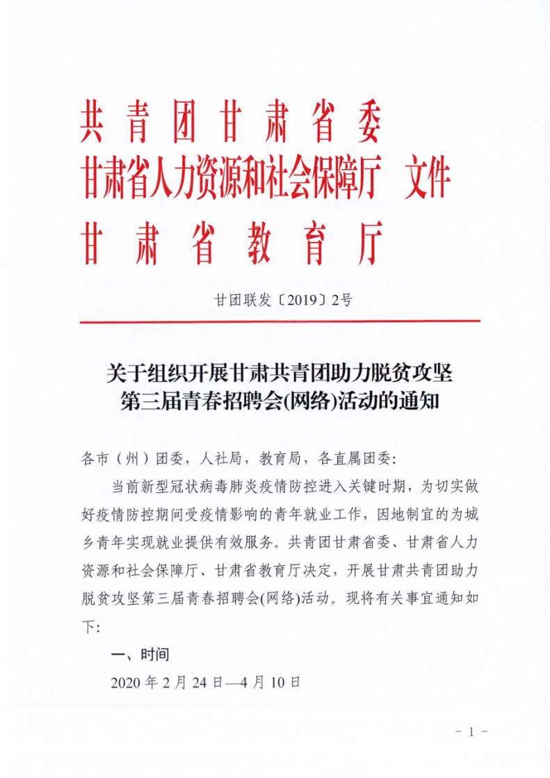 关于组织开展甘肃共青团助力脱贫攻坚第三届青春招聘会(网络)活动的通知