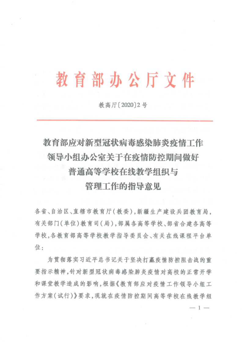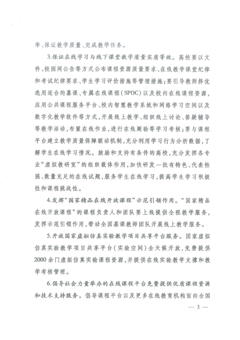教育部做好普通高等学校在线教学组织与管理工作的指导意见