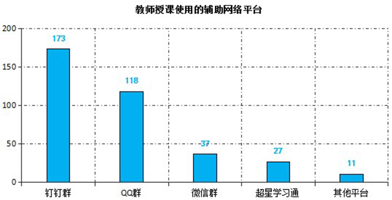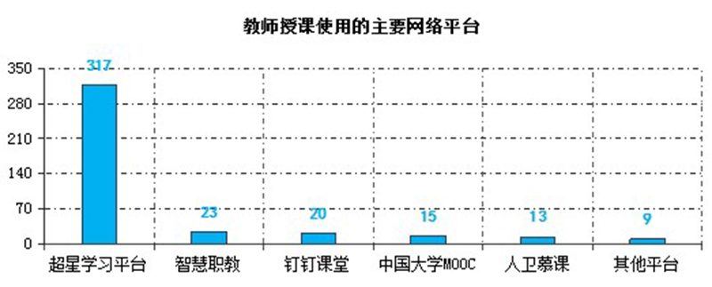 截止3月6日,教师使用武威职业学院在线教学平台建设在线课程226门,使用超星学习通开展教学317次,钉钉课堂30次,智慧职教23次,中国大学MOOC15次,人卫慕课13次,其他平台9次。任课教师还选用钉钉群、QQ群或微信群等作为课程辅助交流平台实施教学组织与管理。在线教学过程中,除开始时部分时段因同时在线人数过多导致网络波动外,其他时间教学平台均能稳定运行,较好的保障了在线教学的顺利实施。