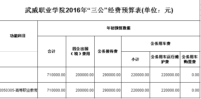 武威职业学院2016年部门预算和“三公”经费预算公开