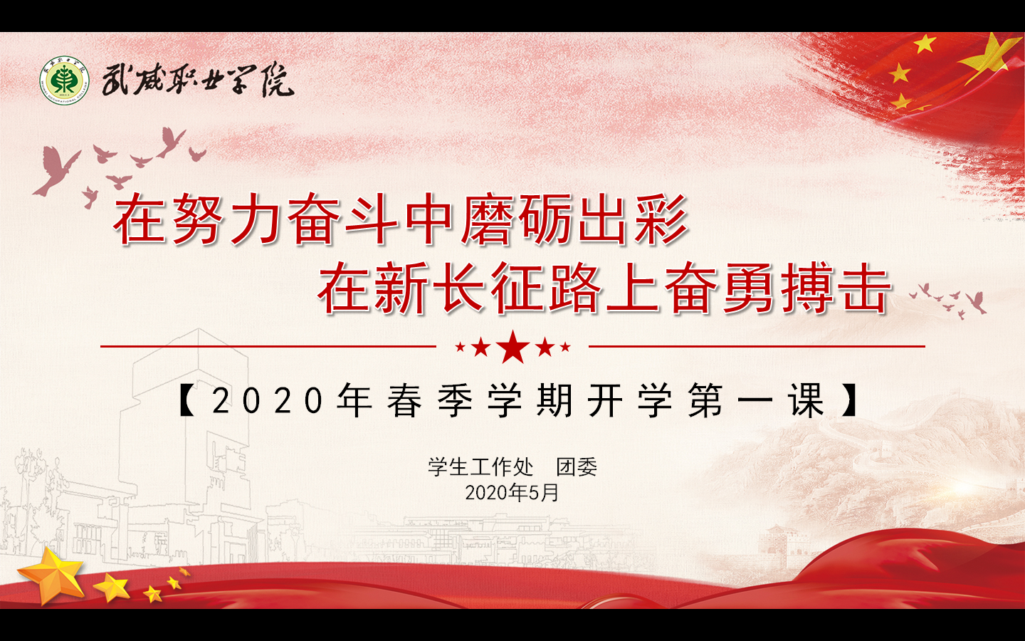 通过同上“开学第一课”,引导学生对党和国家在本次疫情当中做出的果断决策,以及广大医务工作者和其他各条战线的工作人员所做出的努力进行了回顾。对于疫情防控的相关知识,包括个人卫生消毒,个人防护等工作进行了知识普及。对学院封闭式管理期间的各项规章制度以及教学秩序等工作进行安排部署。对于封闭式管理期间学生的心理健康以及自我调试进行了简单的指导。