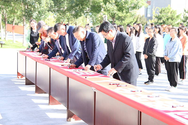 参会领导及师生就“网络安全,人人有责,文明上网,从我做起”进行集体签名。