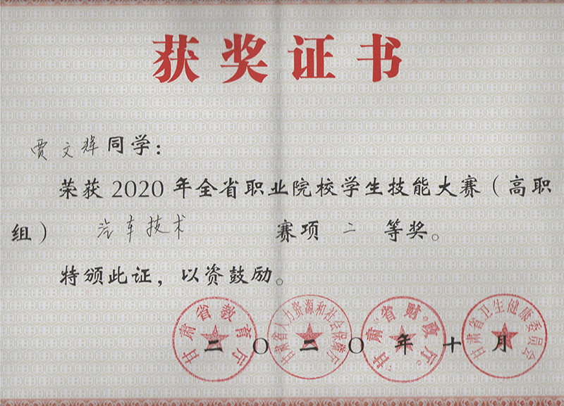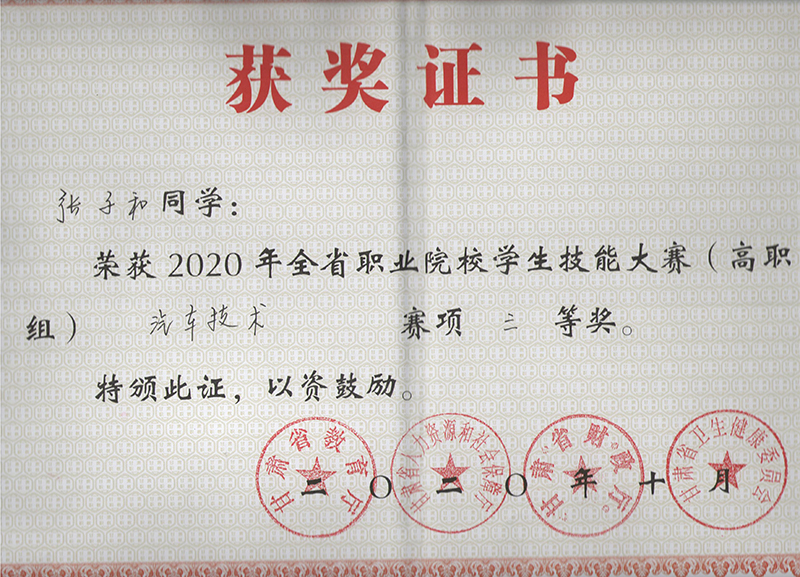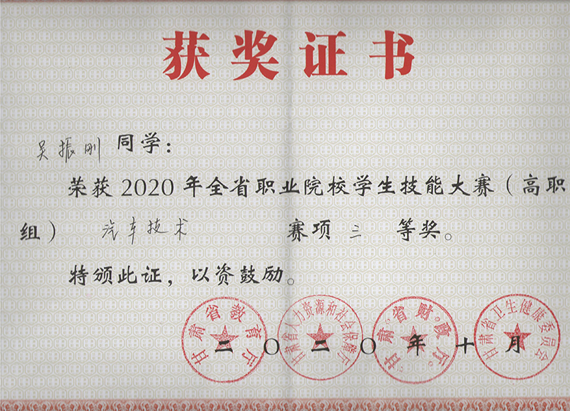 汽车工程系学生在2020年甘肃省职业院校学生技能大赛汽车技术赛项中获奖
