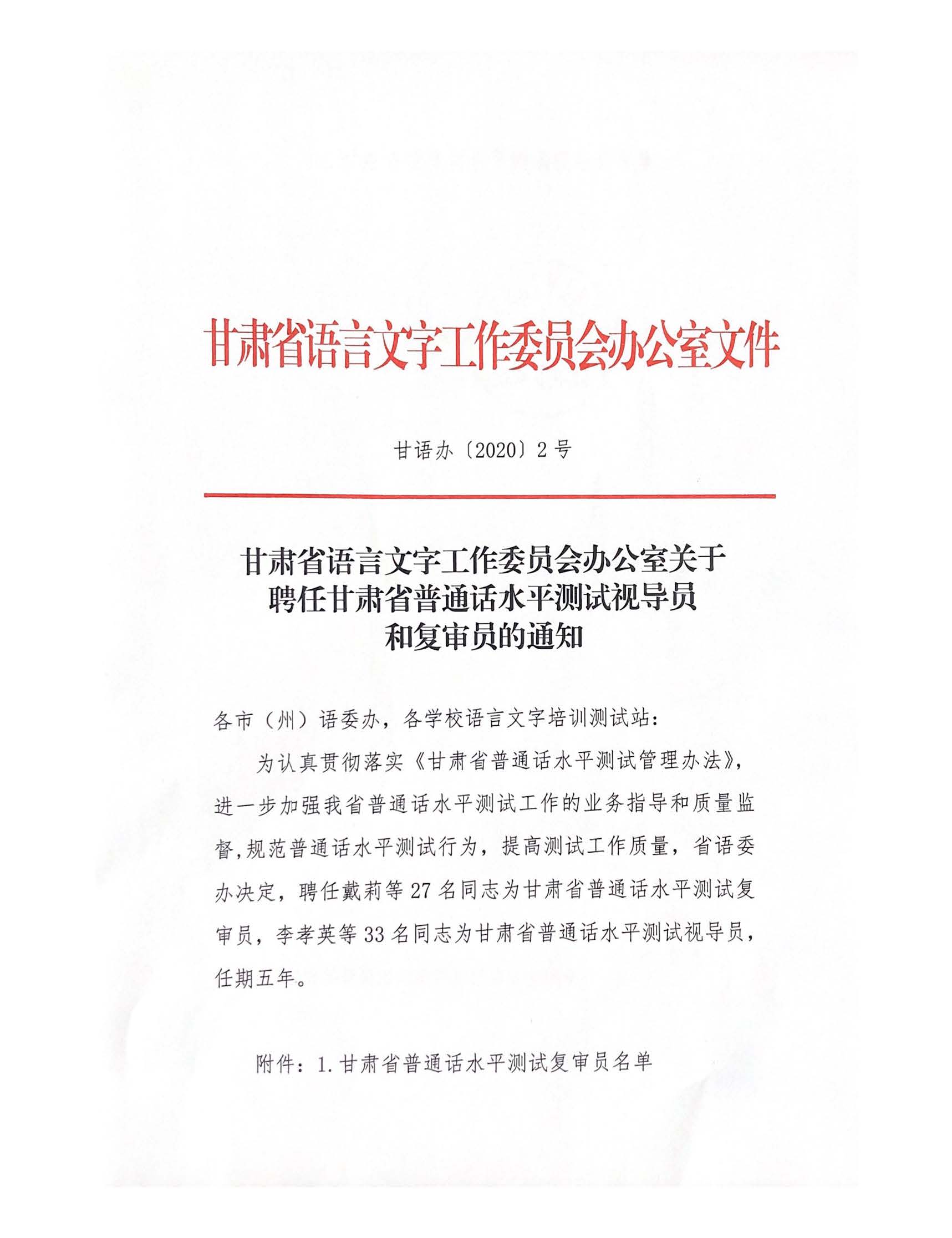 6月24日,我院护理系教师赵颖教授获得甘肃省普通话水平测试复审员资格。根据《甘肃省语言文字工作委员会办公室关于聘任甘肃省普通话水平测试视导员和复审员的通知》评选条件,学院组织推荐赵颖老师为“甘肃省普通话水平测试复审员”。经甘肃省语言文字工作委员会评审,赵颖老师获得甘肃省普通话水平测试复审员”资格,这是我院语言文字工作方面产生的第一位“省级测试复审员”。