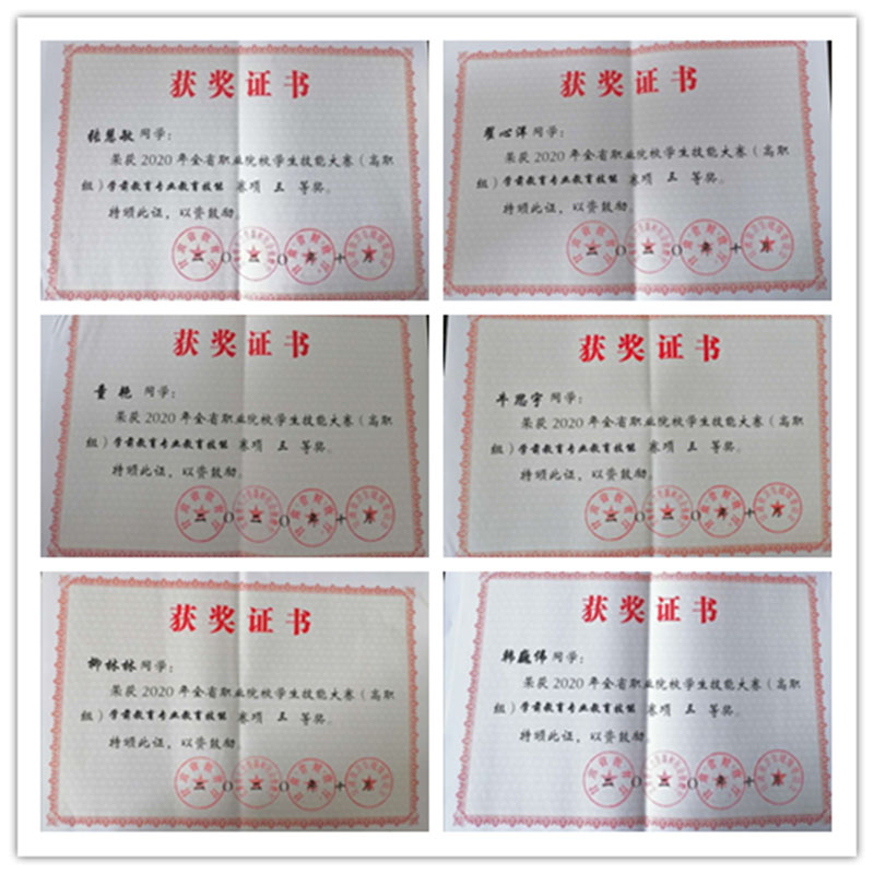 2020年10月在兰州资源环境职业技术学院举办的2020年全省职业院校学生技能大赛(高职组)中,人文艺术教育系参赛的三组同学凭借深厚的理论基础和娴熟的技能操作,在强手如林的选手中脱颖而出,获得大赛二等奖1项,三等奖2项。