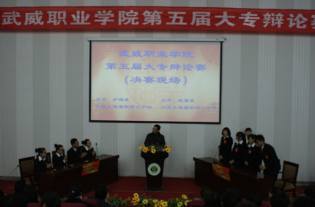 此次比赛的辩题涉及的内容相当广泛,但又紧贴日常生活,兼具生活情趣与时代气息,让辩手们在辩论过程中有话好说,有话可说。赛场上的辩手们,语言机智幽默、举止优雅大方;雄辩滔滔不绝,观点出口成章;思考沉着敏捷,表达机智活泼;立论引经据典、驳论尖锐深刻,让观众从视觉、听觉到感悟,深受感染、引起共鸣。这些都彰显了武威职业学院学子的风度、智慧和满腔热情。虽然一正一反,双方的观点相对,然而我们却为了同一个目的,那就是辩明真理,探讨真知、寻求正确的价值取向。