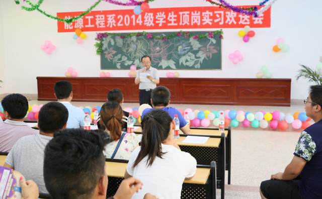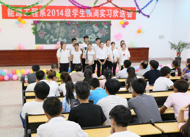 为欢送我系2014级顶岗实习同学,展现大学生的青春风采,7月5日晚七点半,能源工程系2014级学生顶岗实习欢送会在明德楼阶梯教室隆重举行,系全体师生观看了本次演出。