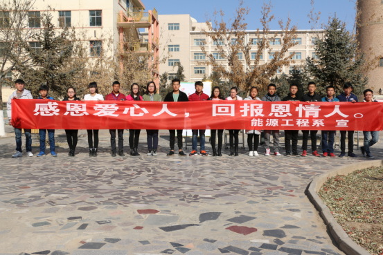 为了成长为合格的祖国建设者,为实现中国梦。2016年11月24日,武威职业学院能源工程系在一号食堂门口,举行了以“感恩爱心人,回报恩情人”为主题的活动,出席本次活动的有能源工程系全体学生会成员。