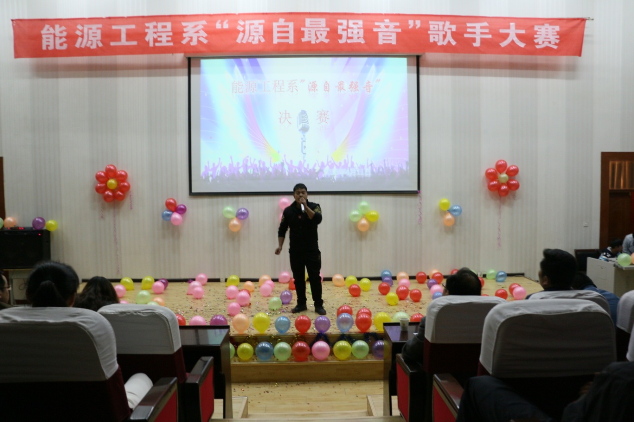 为提高学生的综合能力,丰富大学生课余生活,提高大学生艺术素养,能源工程系于4月11日晚在尚德楼东阶梯举行了“源自最强音”歌手大赛。系党总支书记黄文源,能源工程系学生工作负责人黄述杰及全体师生观看了本次比赛。