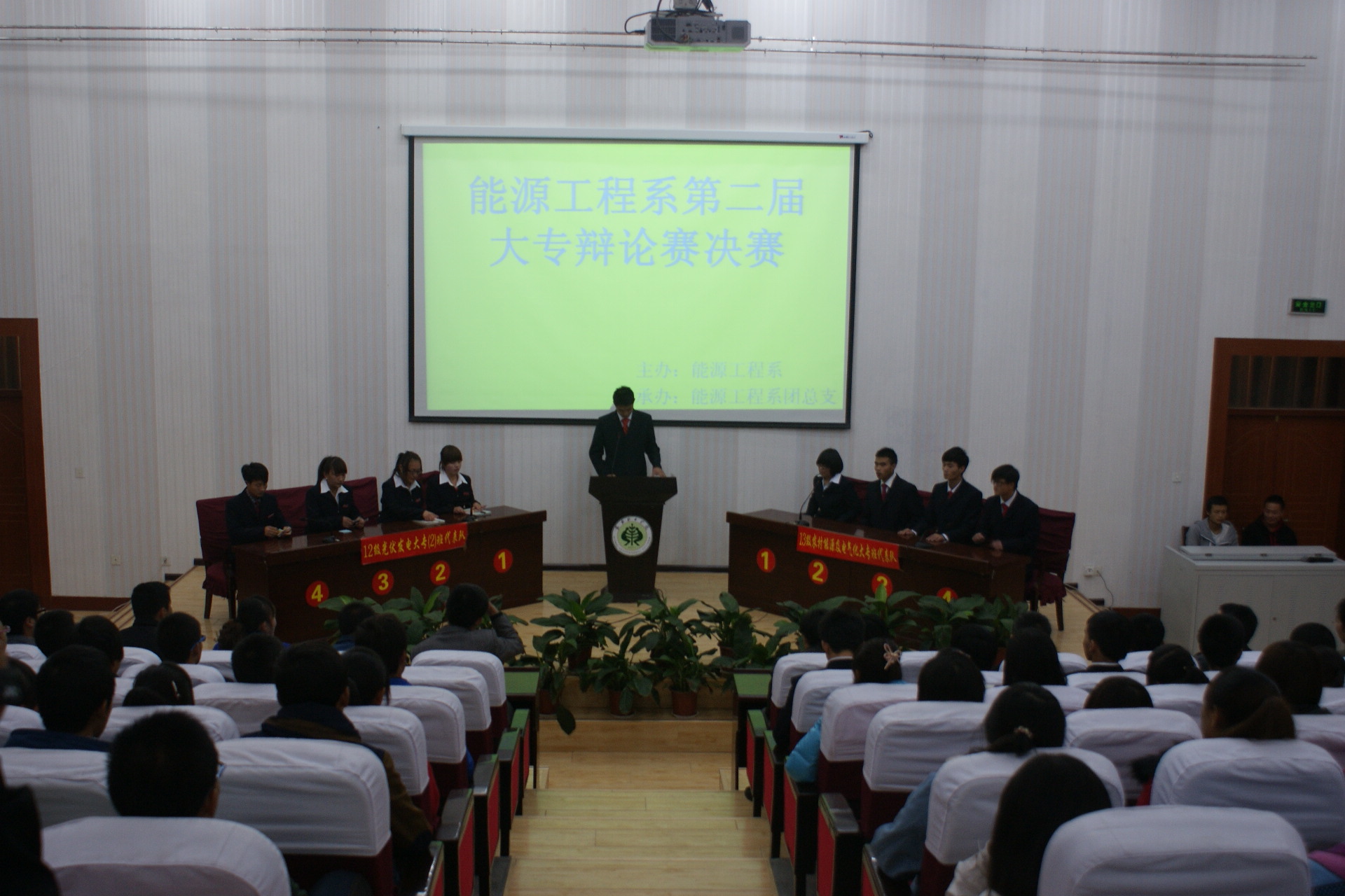 11月10日晚,能源工程系在东阶梯教室成功举办了能源工程系第二届大专生辩论赛三、四名和冠、亚军争夺战。能源工程系全体老师和大一、大二学生共270人参加了本次决赛。本次比赛在班级初赛的基础上有8支代表队的32名选手代表班级参加了全系比赛,经过系部复赛、半决赛两个阶段的激烈竞争,最终有四支代表队晋级决赛。