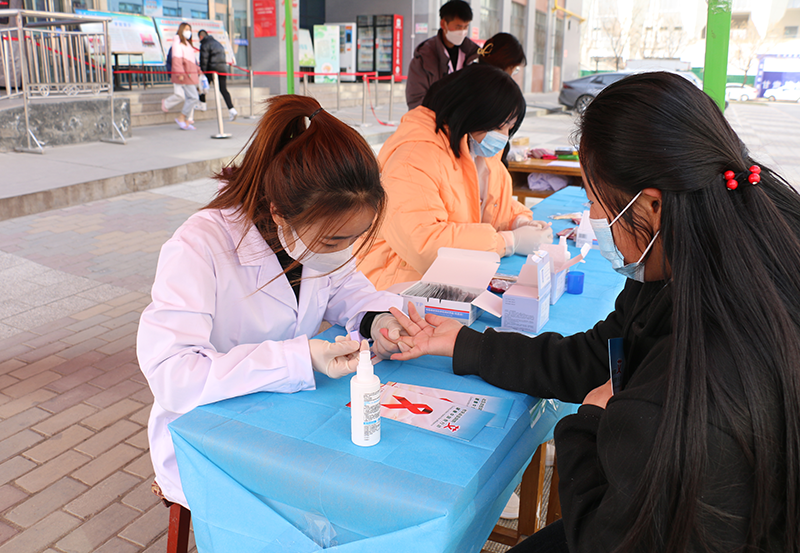 12月1日,学院护理系红丝带协会联合凉州区卫生健康局、凉州区疾控中心,在二号食堂门口及荷花池开展了“世界艾滋病日”青年学生咨询检测活动,活动中对260余名学生进行了免费艾滋病检测,并予以奖品鼓励,组织了防艾知识宣传志愿队伍现场发放宣传手册,制作并赠送红丝带标志400余个。