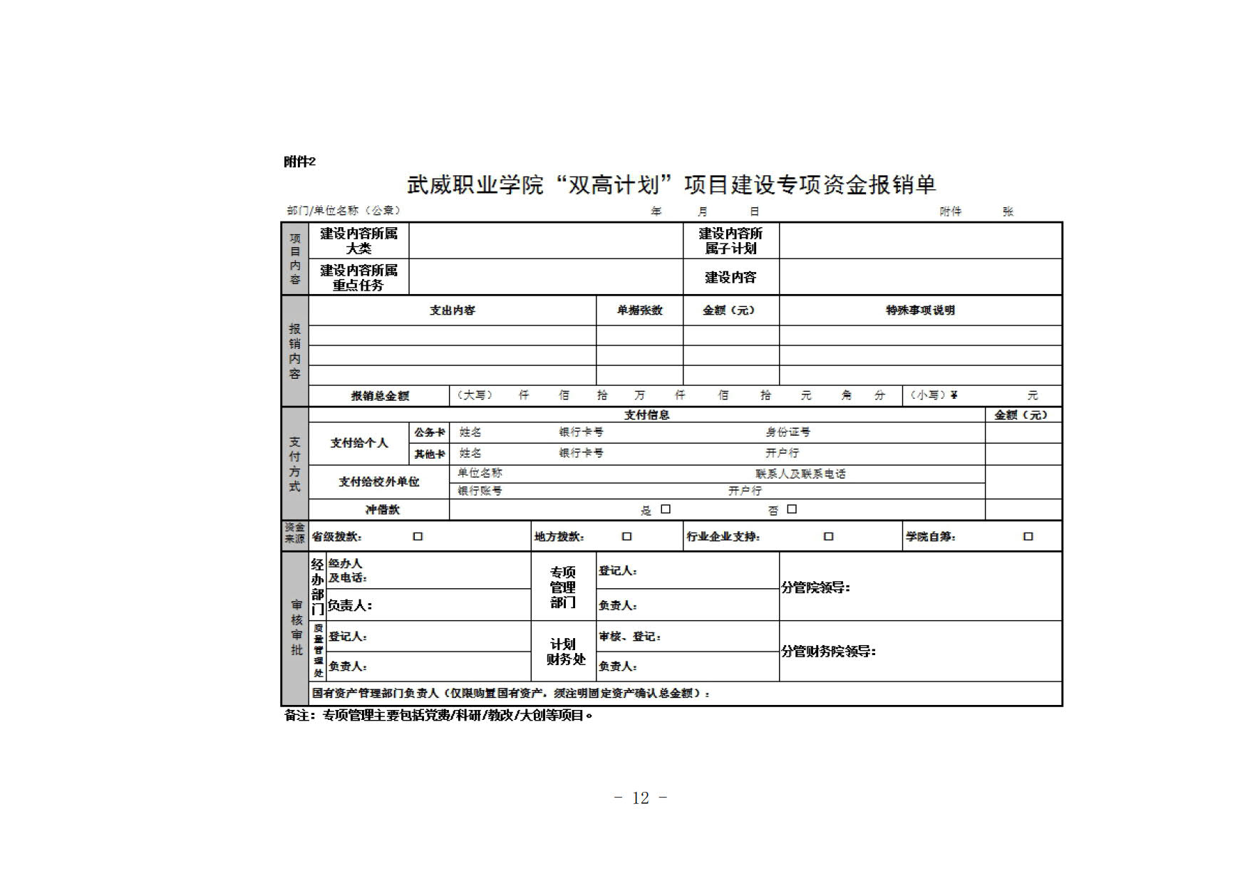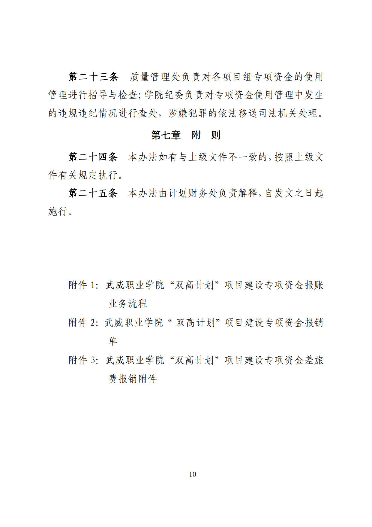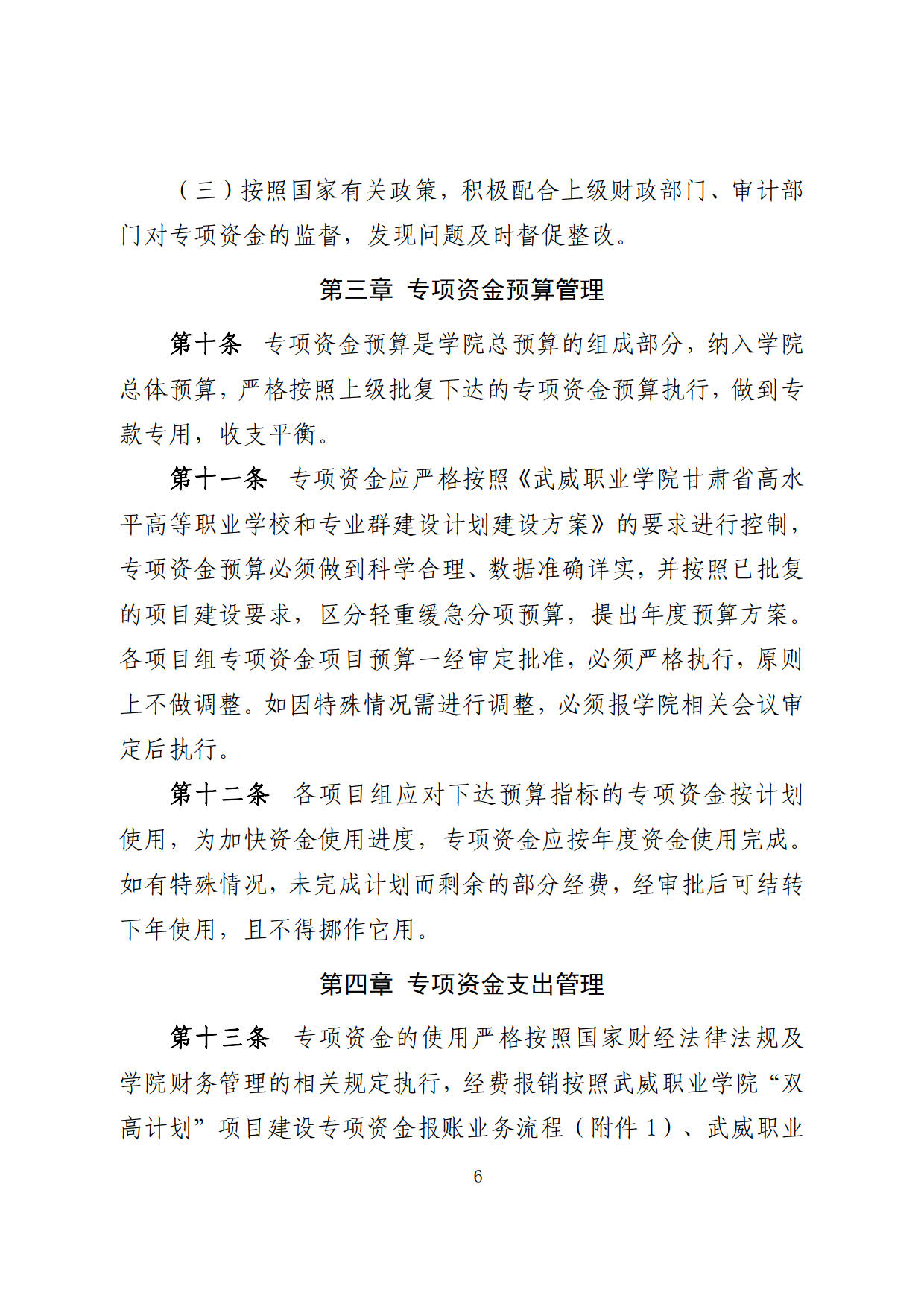 关于印发《武威职业学院“双高计划”项目建设专项资金管理办法》的通知