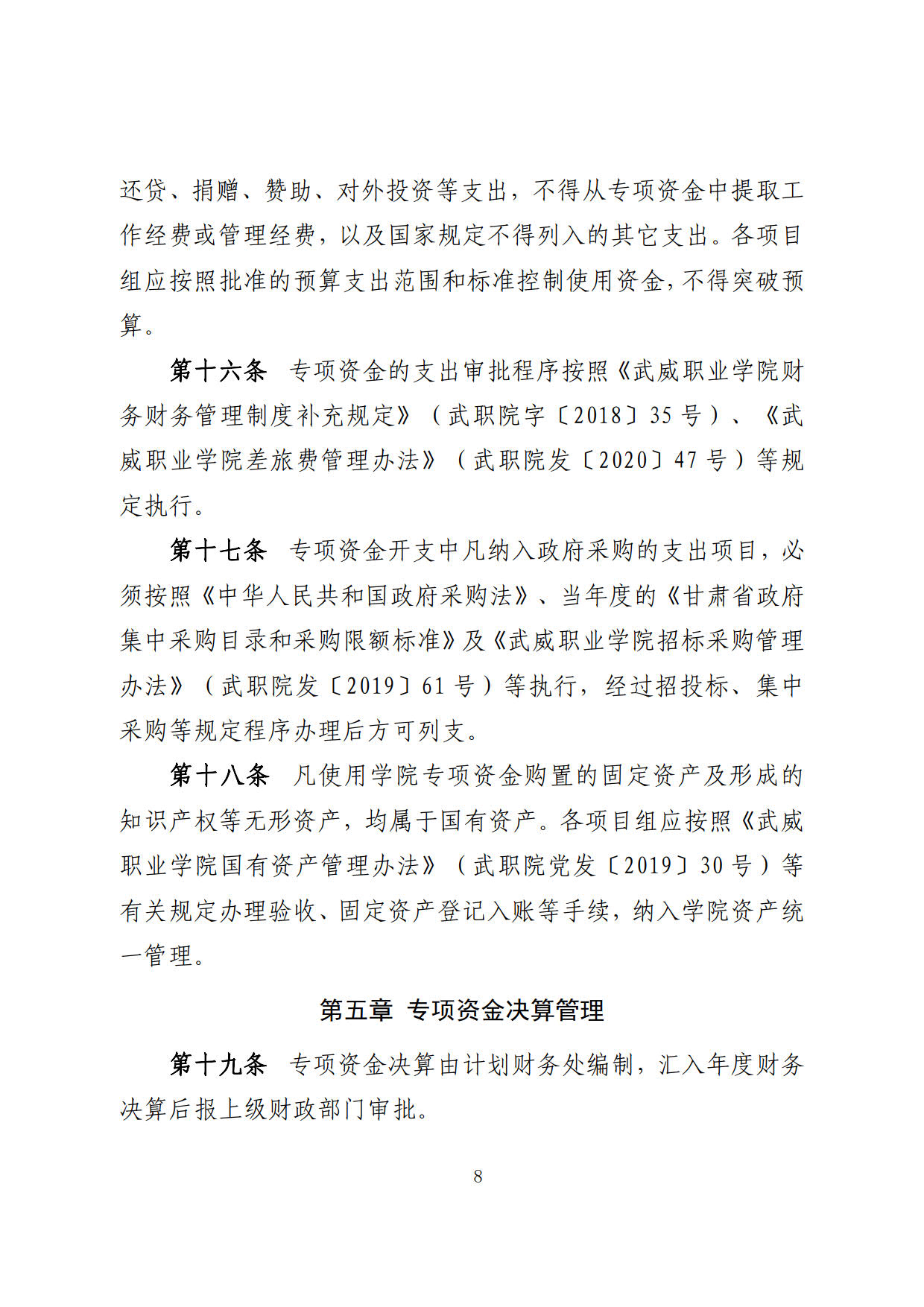 关于印发《武威职业学院落实“技能甘肃”专项资金管理办法》的通知