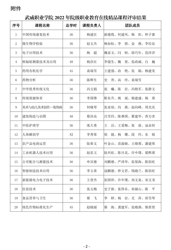 关于学院2022年院级职业教育在线精品课程评审结果的公示