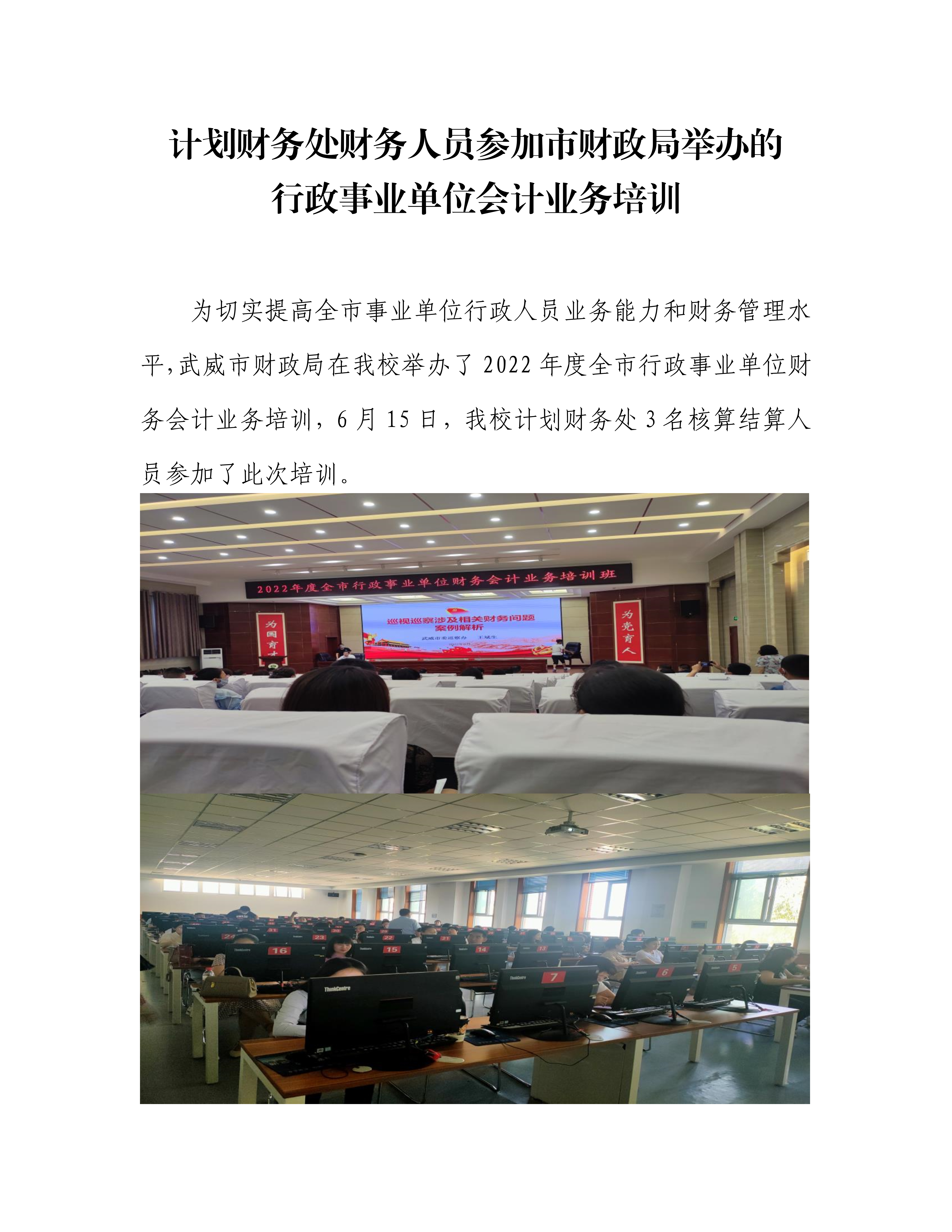 计划财务处财务人员参加市财政局举办的行政事业单位会计业务培训