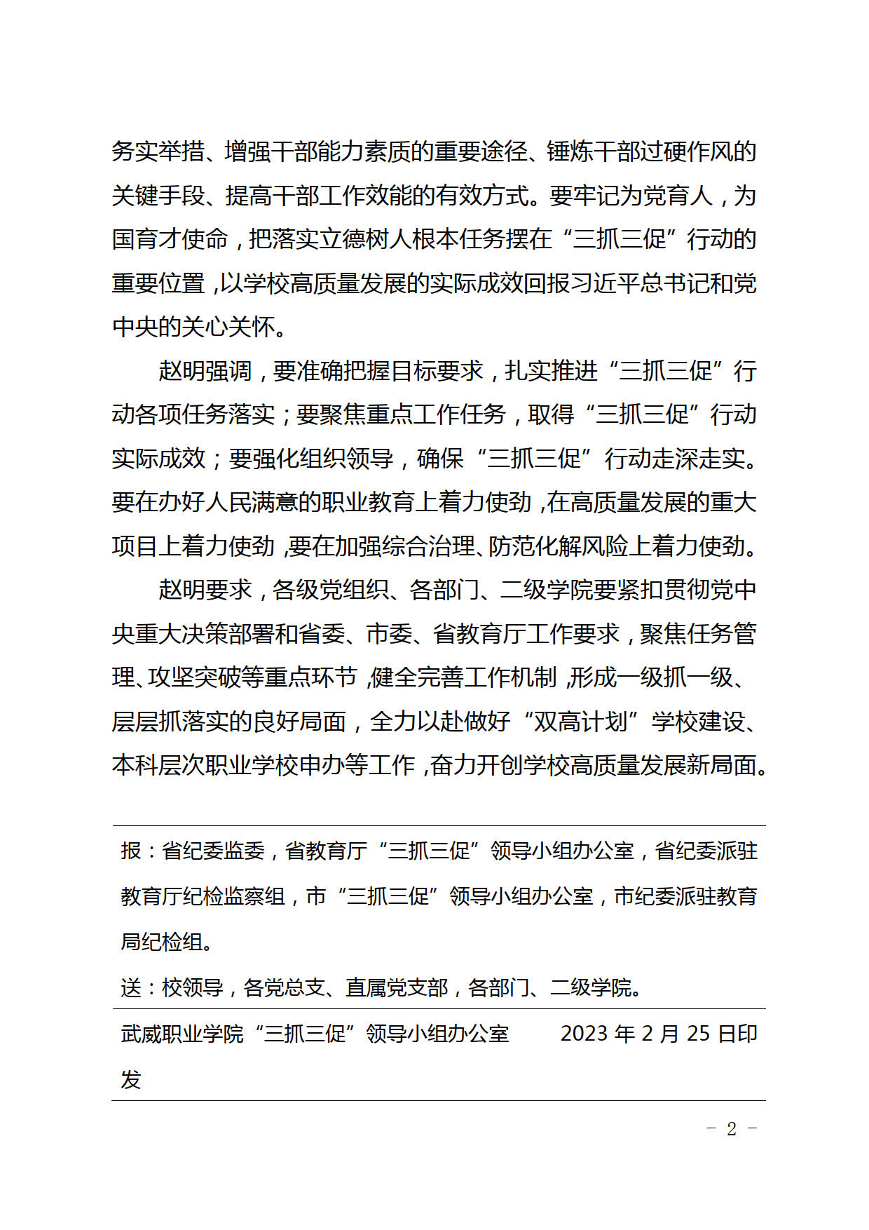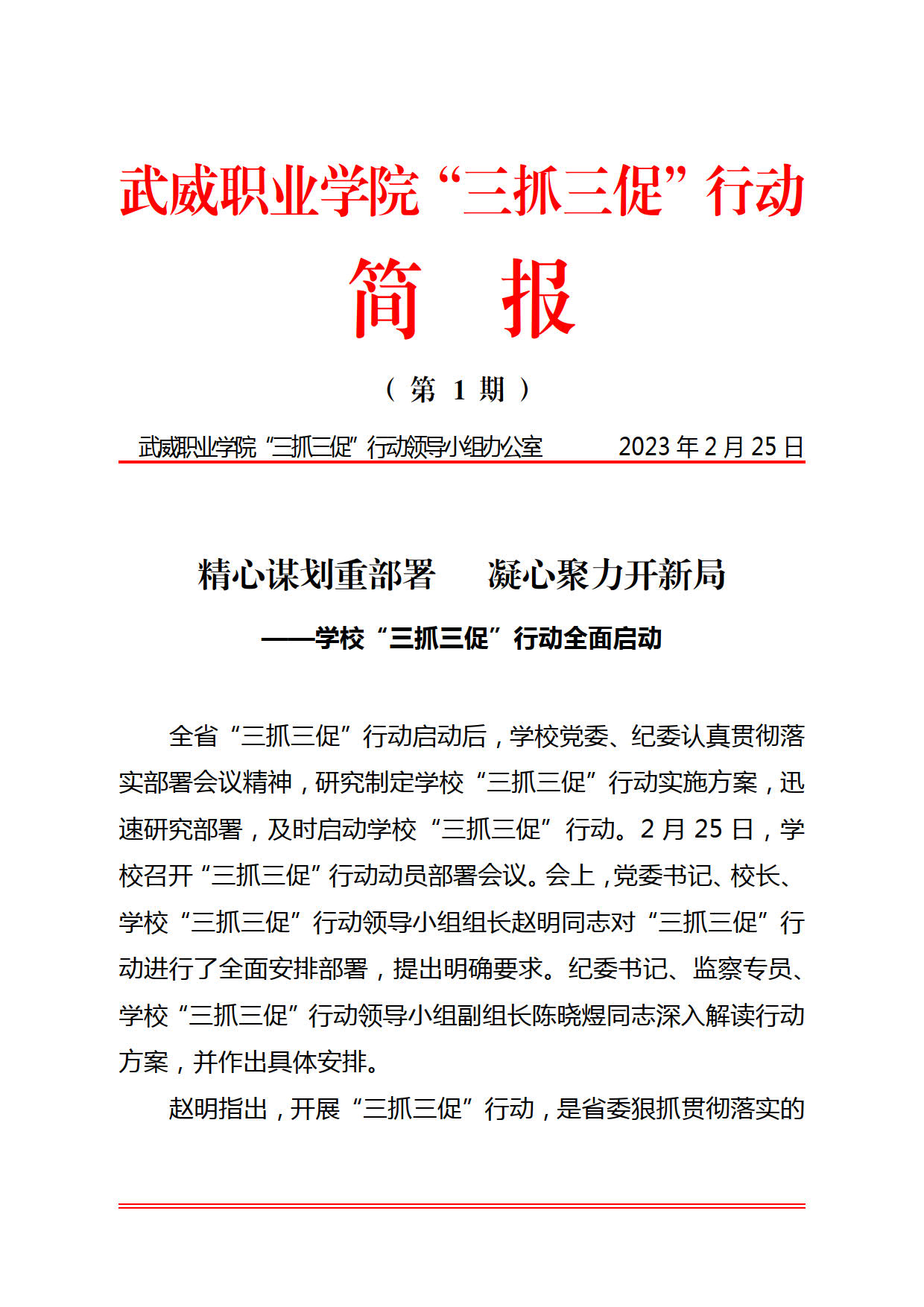 武威职业学院“三抓三促”行动简报第1期