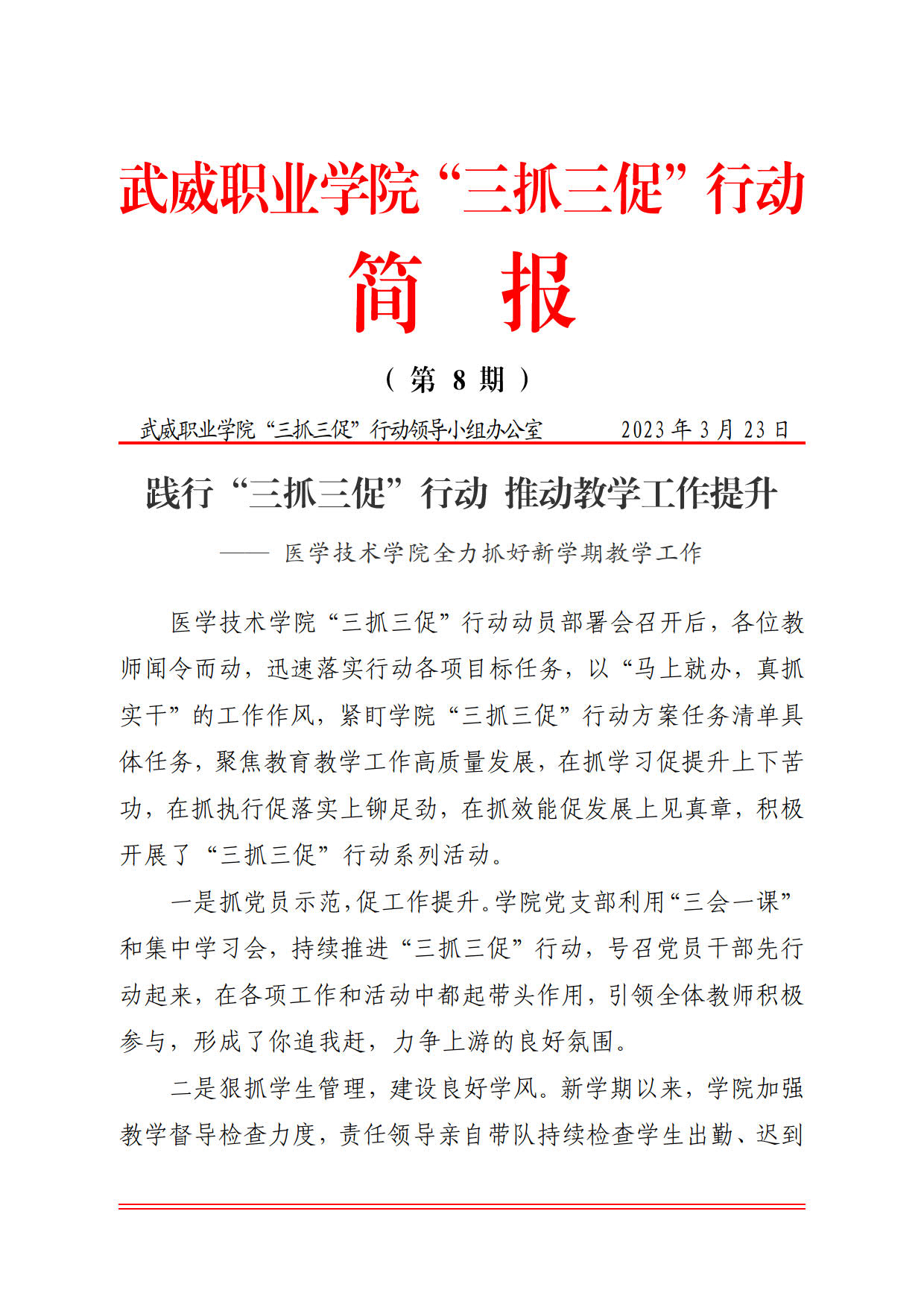 简报第8期:践行“三抓三促”行动 推动教学工作提升