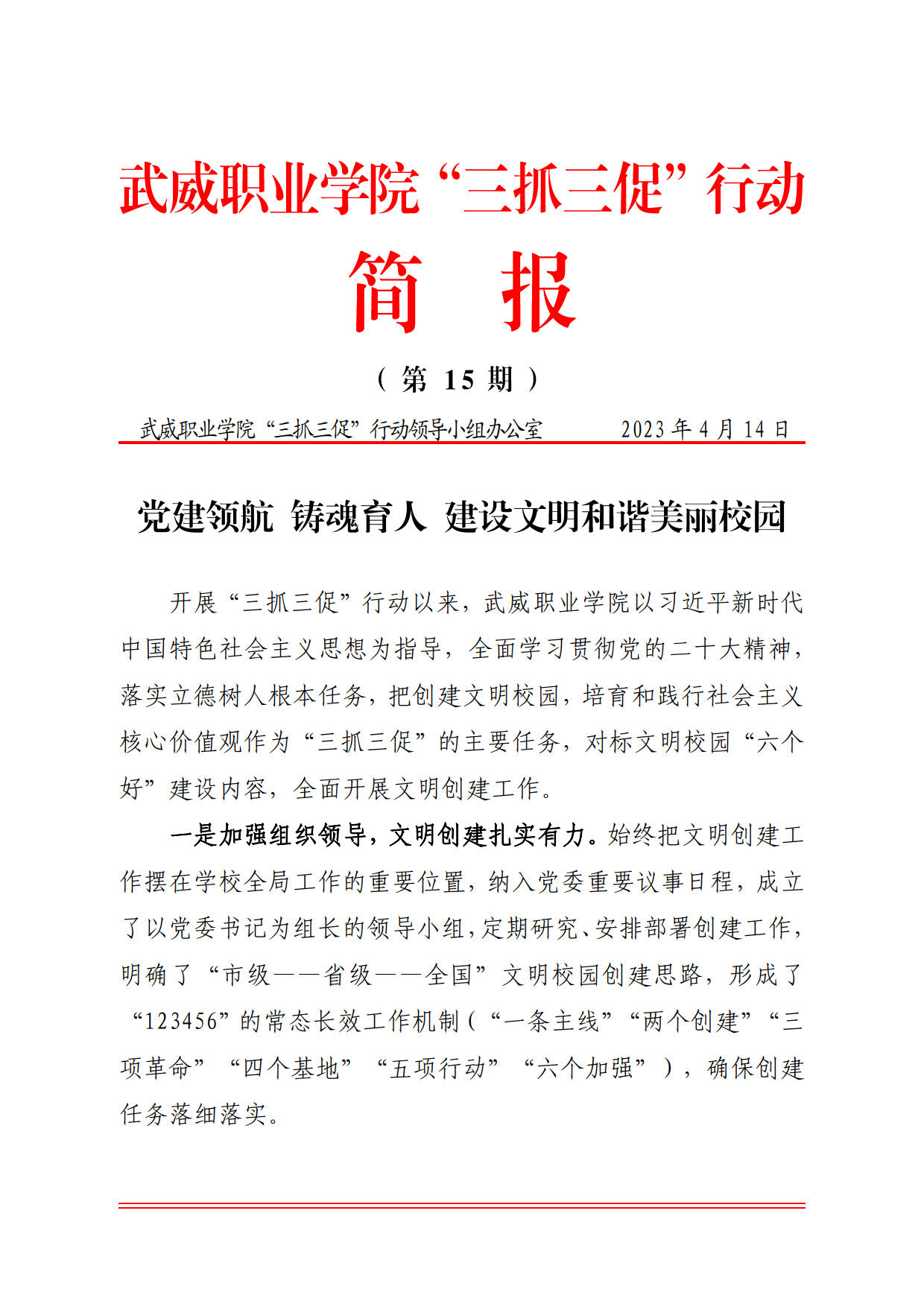 简报第15期:党建领航 铸魂育人 建设文明和谐美丽校园