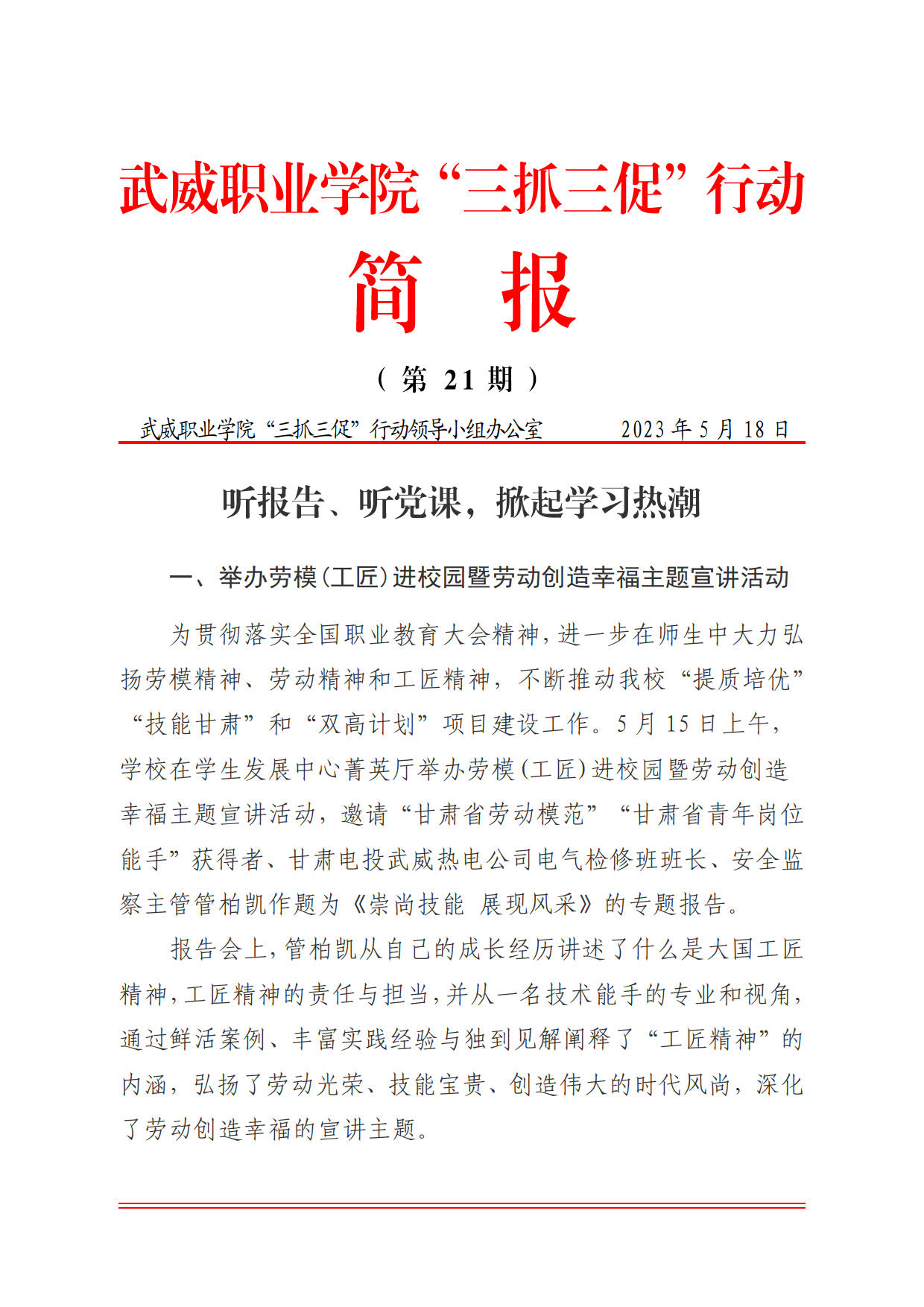 简报第21期:听报告,听党课,掀起学习热潮
