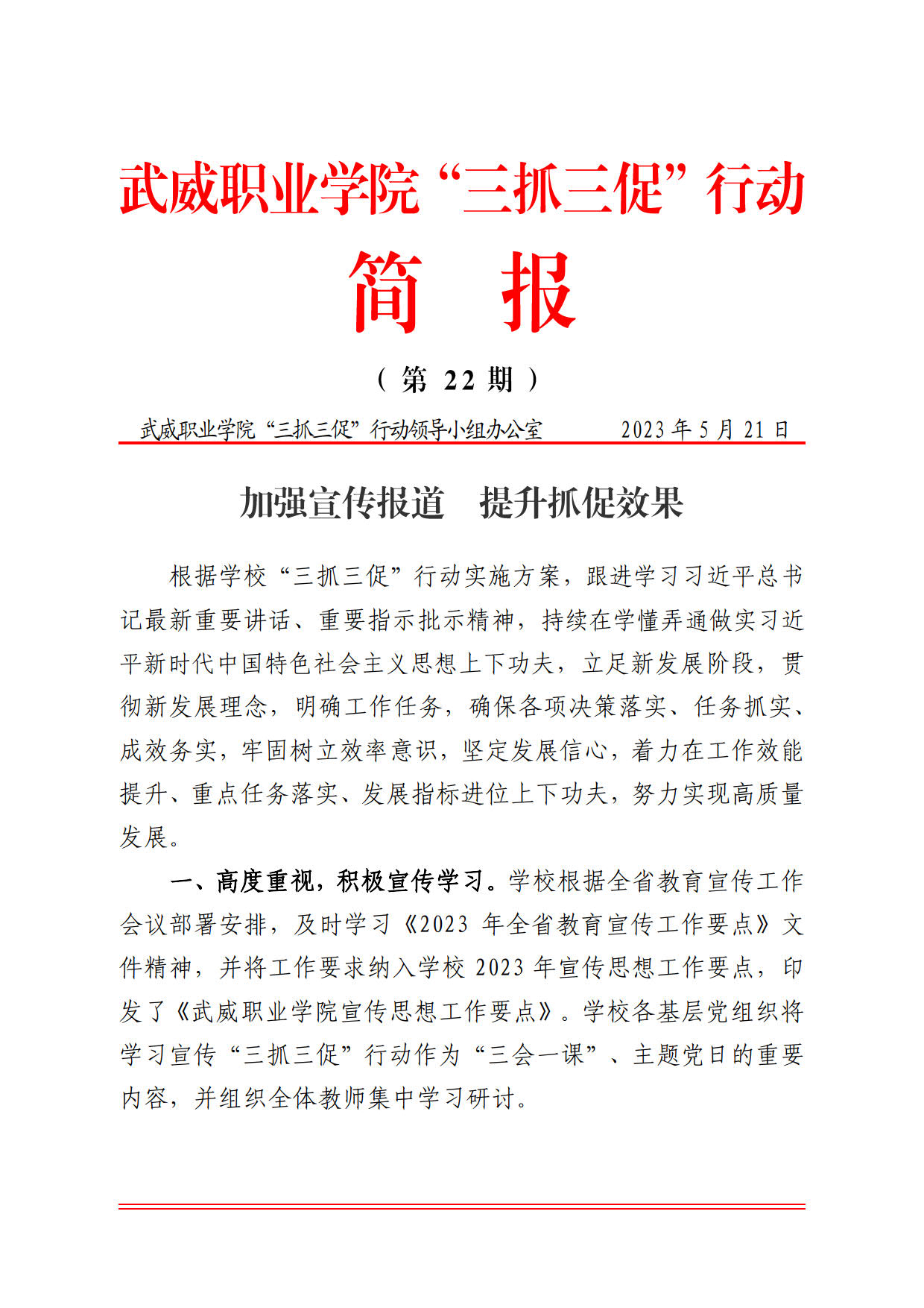 简报第22期:加强宣传报道 提升抓促效果