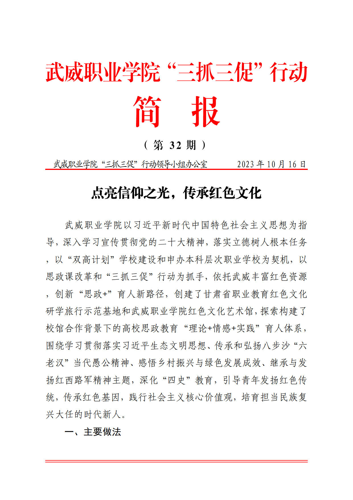简报第32期:点亮信仰之光,传承红色文化