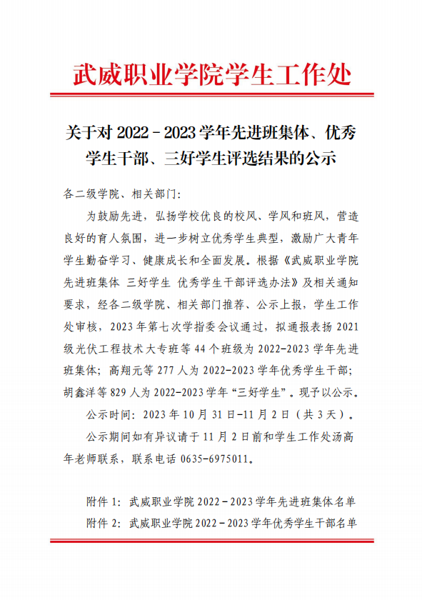 关于对2022-2023学年先进班集体、优秀学生干部、三好学生评选结果的公示