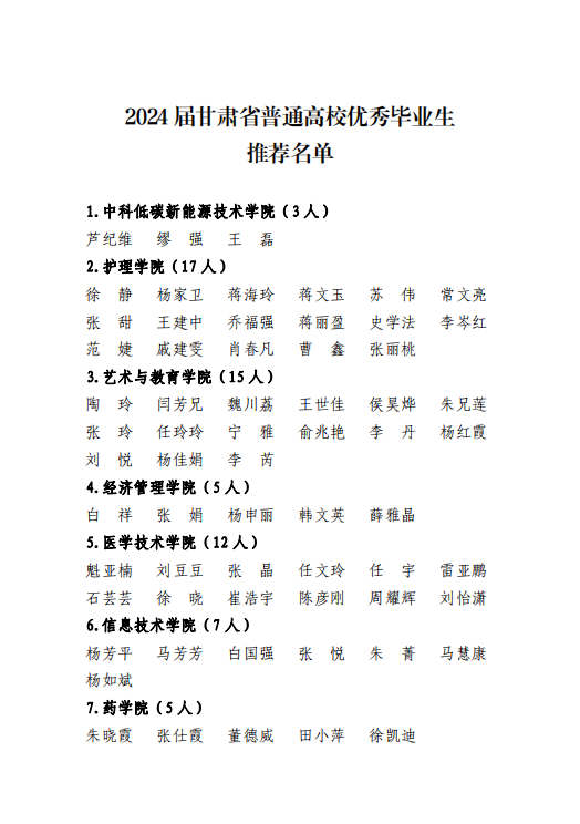 关于2024届甘肃省普通高校优秀毕业生候选人的公示