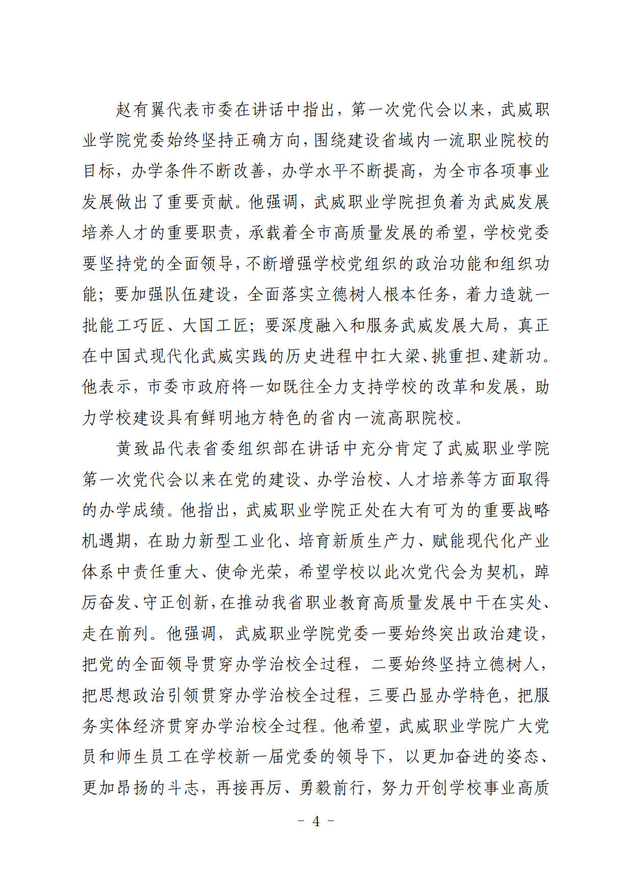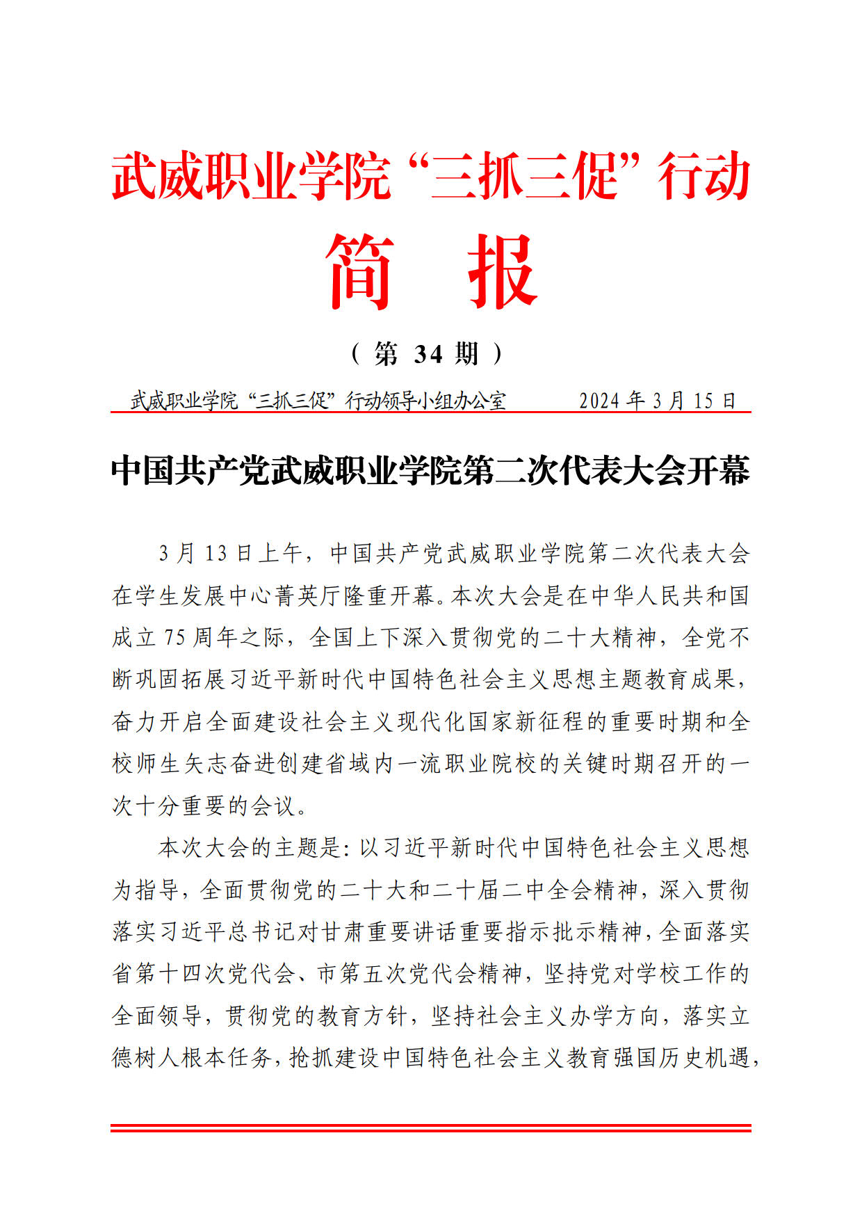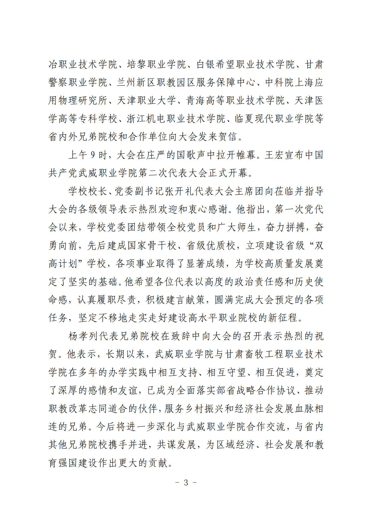 简报第34期:中国共产党武威职业学院第二次代表大会开幕