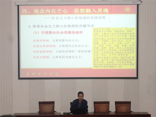 10月20日,我系邀请学院副院长翟存祥教授在学院正德厅为全系师生作了一场题为《如何践行社会主义核心价值观》的专题讲座,讲座由我系党总支书记晏素珍主持。