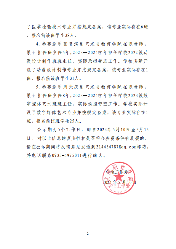 2024年“中银杯”全省职业院校技能大赛班主任能力比赛武威职业学院参赛选手信息公示